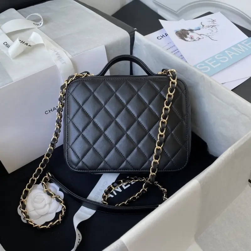 Its structured and compact design makes it an ideal companion for travel or for adding a touch of glamour to your dressing table. This versatile case provides a chic solution for keeping your makeup, skincare, and other small treasures secure and organized.