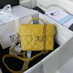 Discover a timeless accessory crafted for sophistication and versatility. This small vanity case features a beautifully structured silhouette, meticulously fashioned from high-quality grained calfskin and accented with polished gold-tone metal hardware. Its compact yet organized design makes it an ideal companion for both day and evening, seamlessly blending classic style with practical elegance.