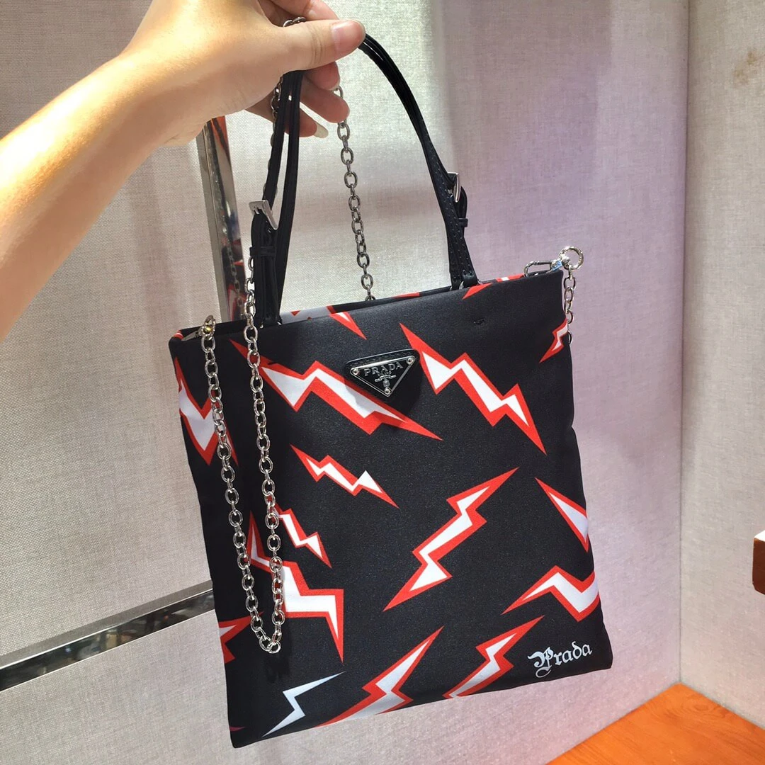 Graphic Lightning Print Nylon Travel Tote Shoulder Bag 1BA252