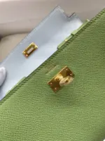 This compact yet surprisingly spacious wallet opens to reveal a well-organized partitioned leather interior. It features a convenient zipper pocket, multiple card slots, and patch pockets to keep your essentials in order. The design is secured with a classic front flap, a delicate strap, and a polished gold-plated turn-lock closure, adding a touch of timeless refinement. The detachable 110cm strap allows for comfortable, hands-free crossbody wear.