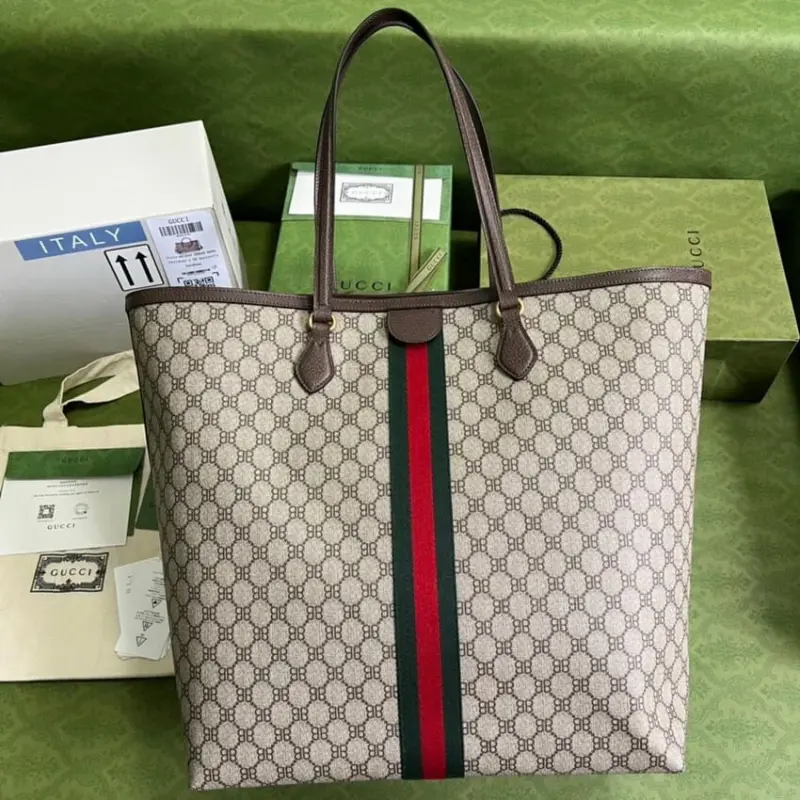 This large tote features aged gold-tone hardware that adds a touch of vintage-inspired elegance to its modern design. The interior is thoughtfully organized with multiple pockets to keep your essentials secure and accessible, while a reinforced base ensures durability for long-lasting use. Secure your belongings with a simple magnetic closure and carry it all in style with the two sturdy top handles.