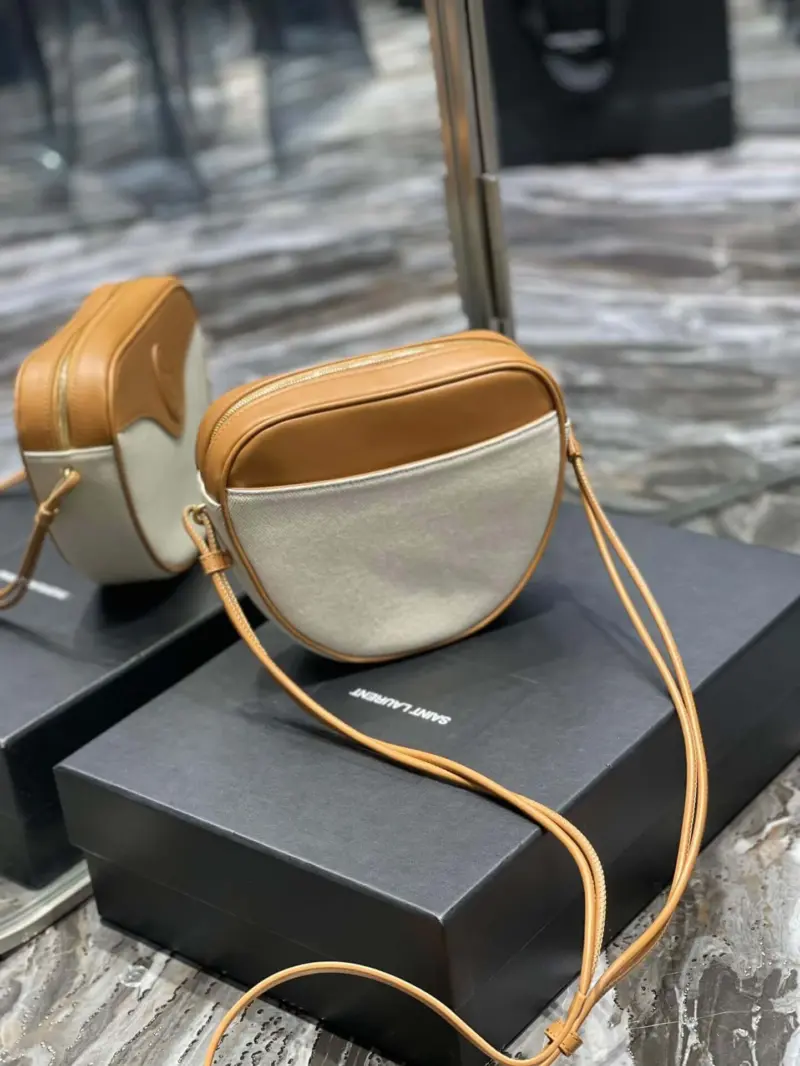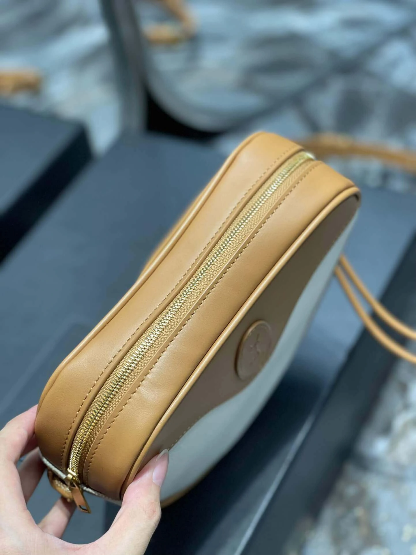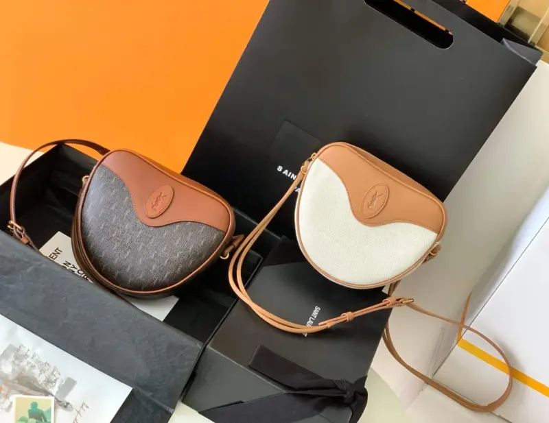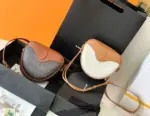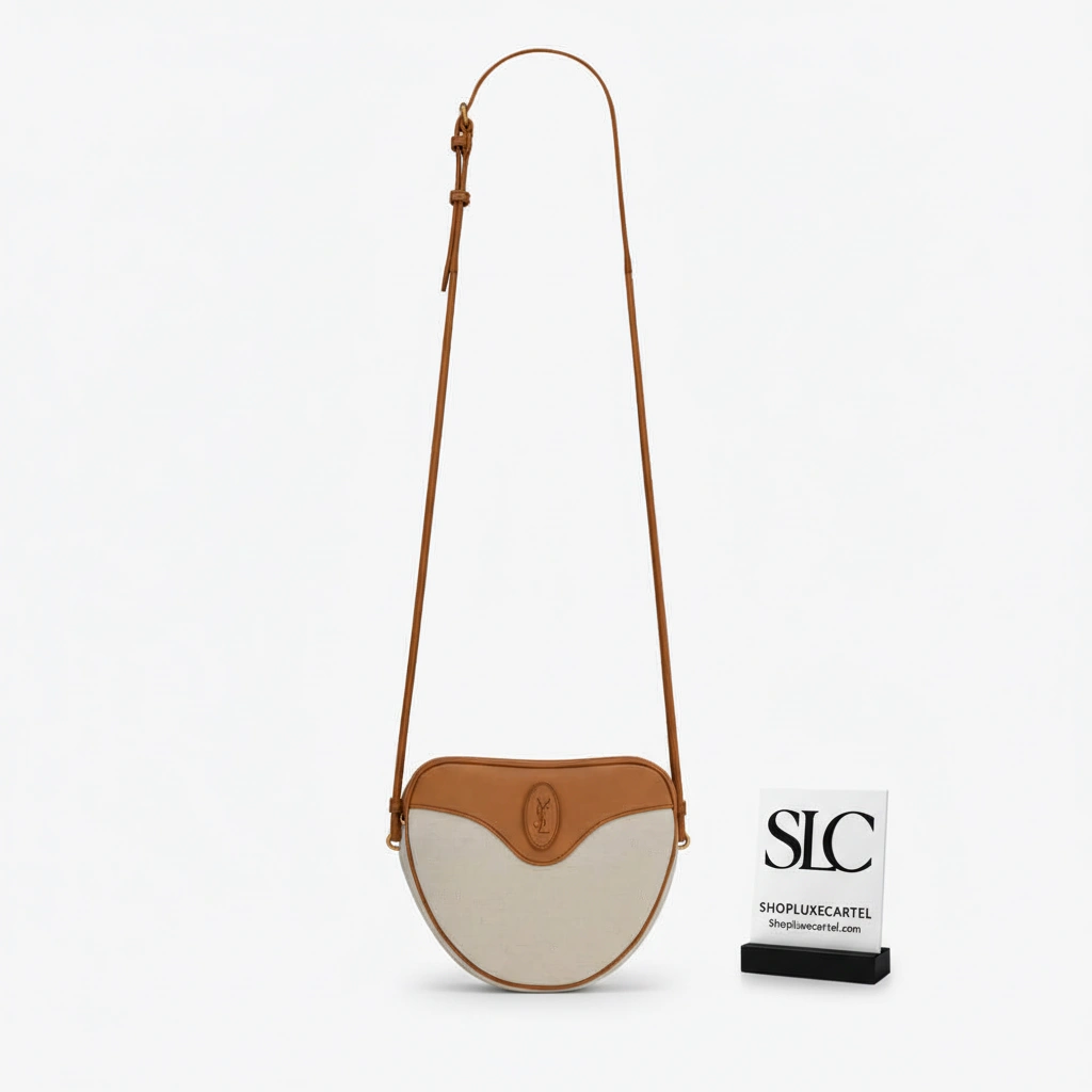 Embrace a touch of romance with this beautifully designed heart-shaped crossbody bag. Featuring a sophisticated monogram print on a durable canvas, this piece offers a unique and stylish way to carry your essentials. The warm brown and gold color scheme provides a classic look, making it a versatile accessory for both day and evening wear.