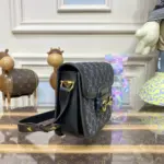 Designed for modern versatility, this bag features an adjustable shoulder strap with snap buttons, allowing you to find the perfect drop for comfort and style. The well-organized interior, secured by a sleek flap closure, includes three gussets with both a zipper and an open pocket, ensuring your essentials are always within easy reach. This piece is a testament to enduring style and practical luxury.