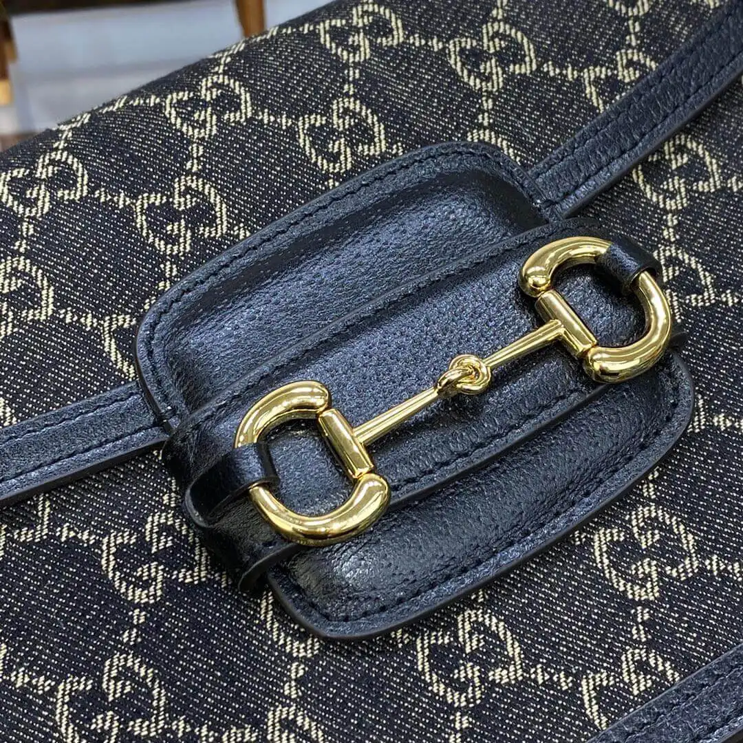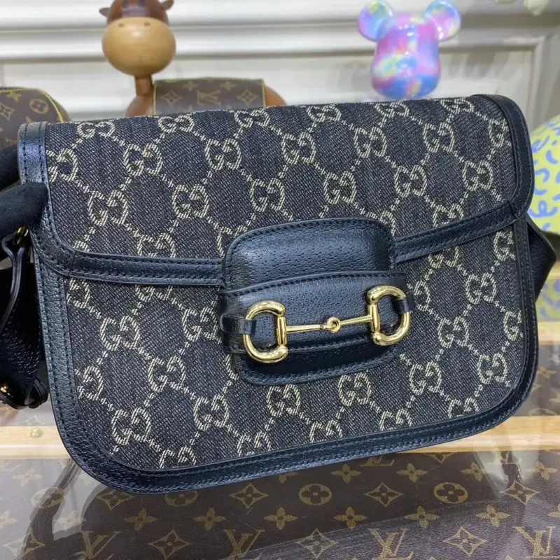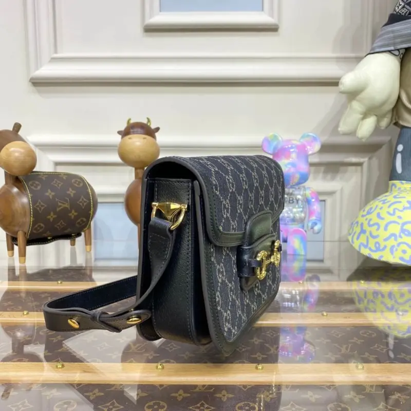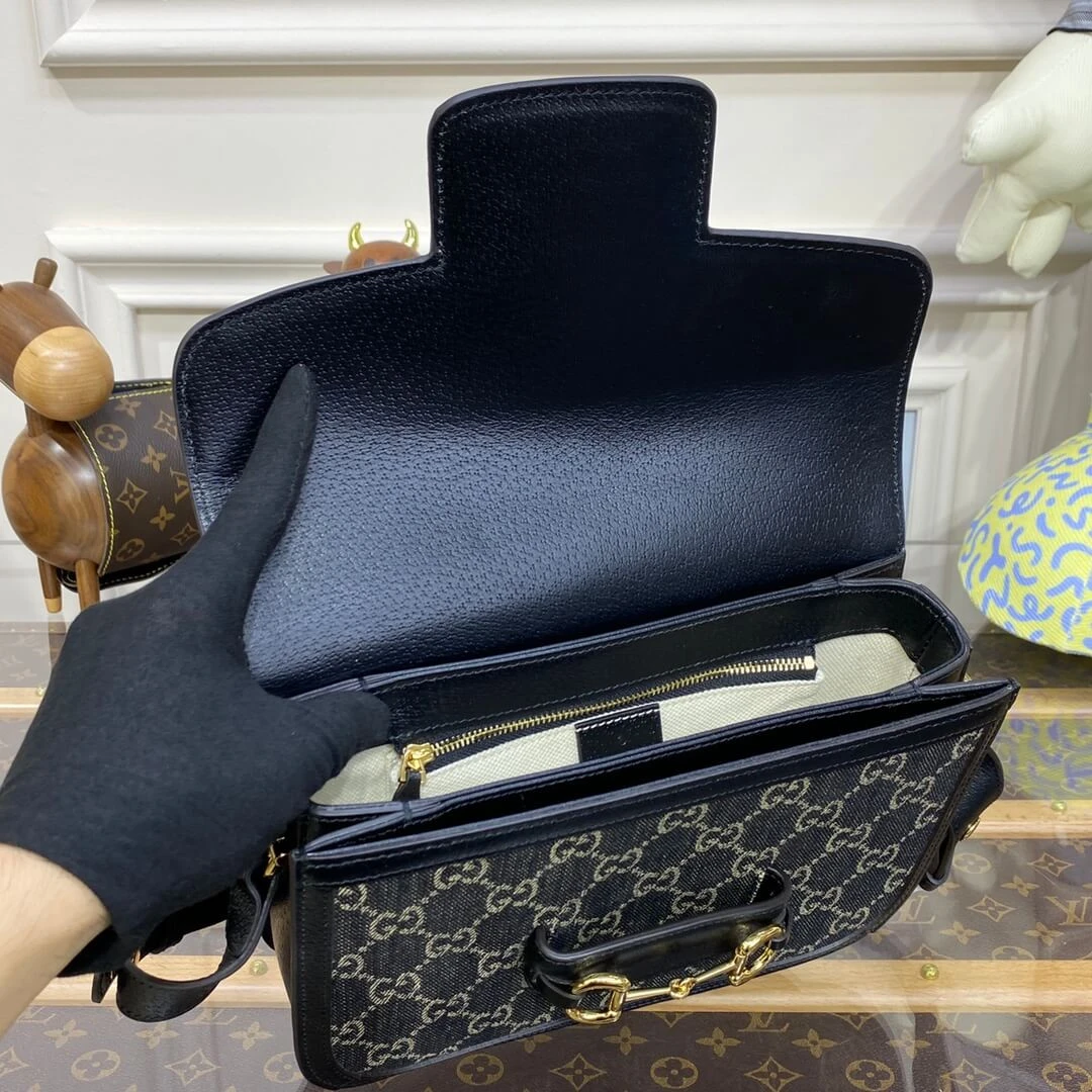Horsebit 1955 Classic Black Denim Crossbody Shoulder Bag 602204