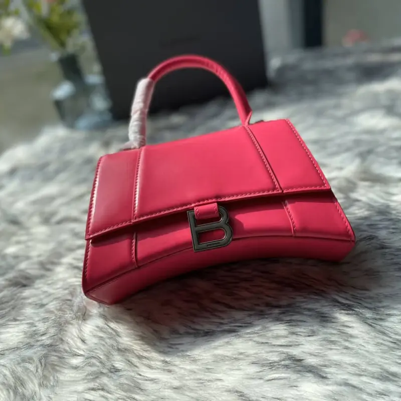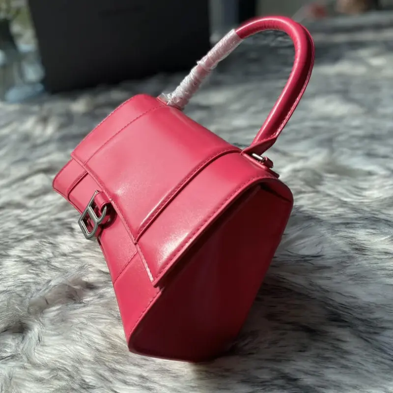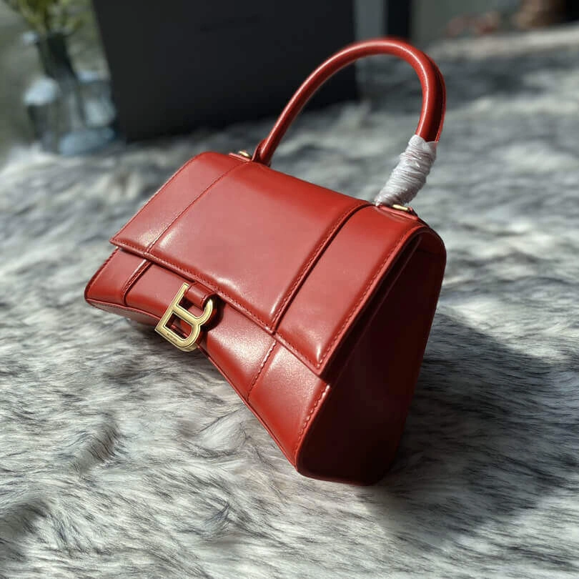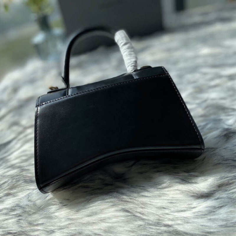 Hourglass S Top Handle Tote in Shiny Box Calfskin