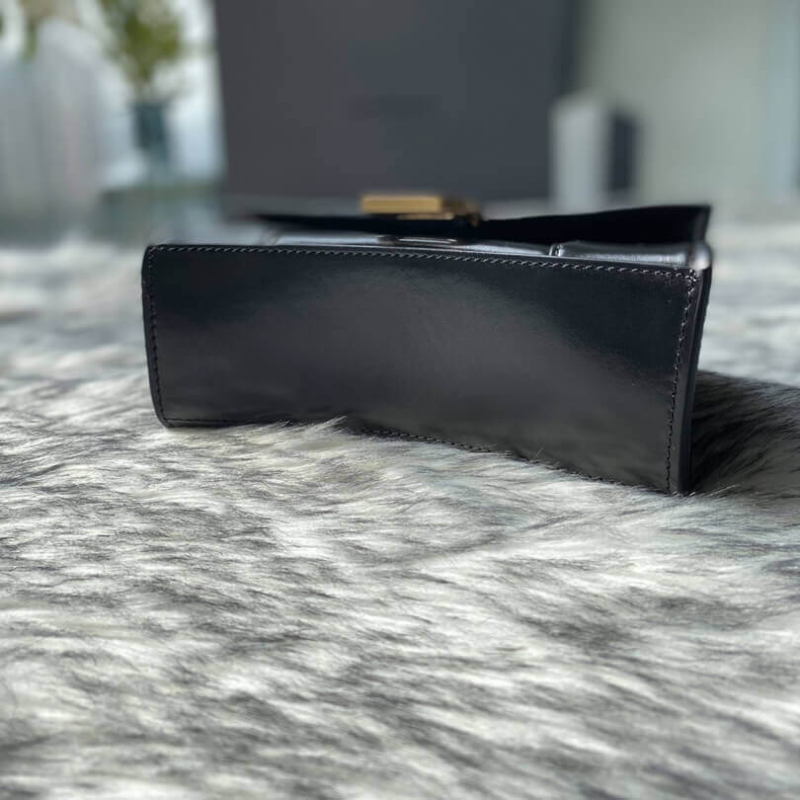 Designed for versatility, this bag can be carried by its sturdy top handle for a classic, polished look or worn crossbody using the detachable and adjustable shoulder strap. The compact interior is perfectly sized to hold your essentials like a phone, cardholder, and keys.