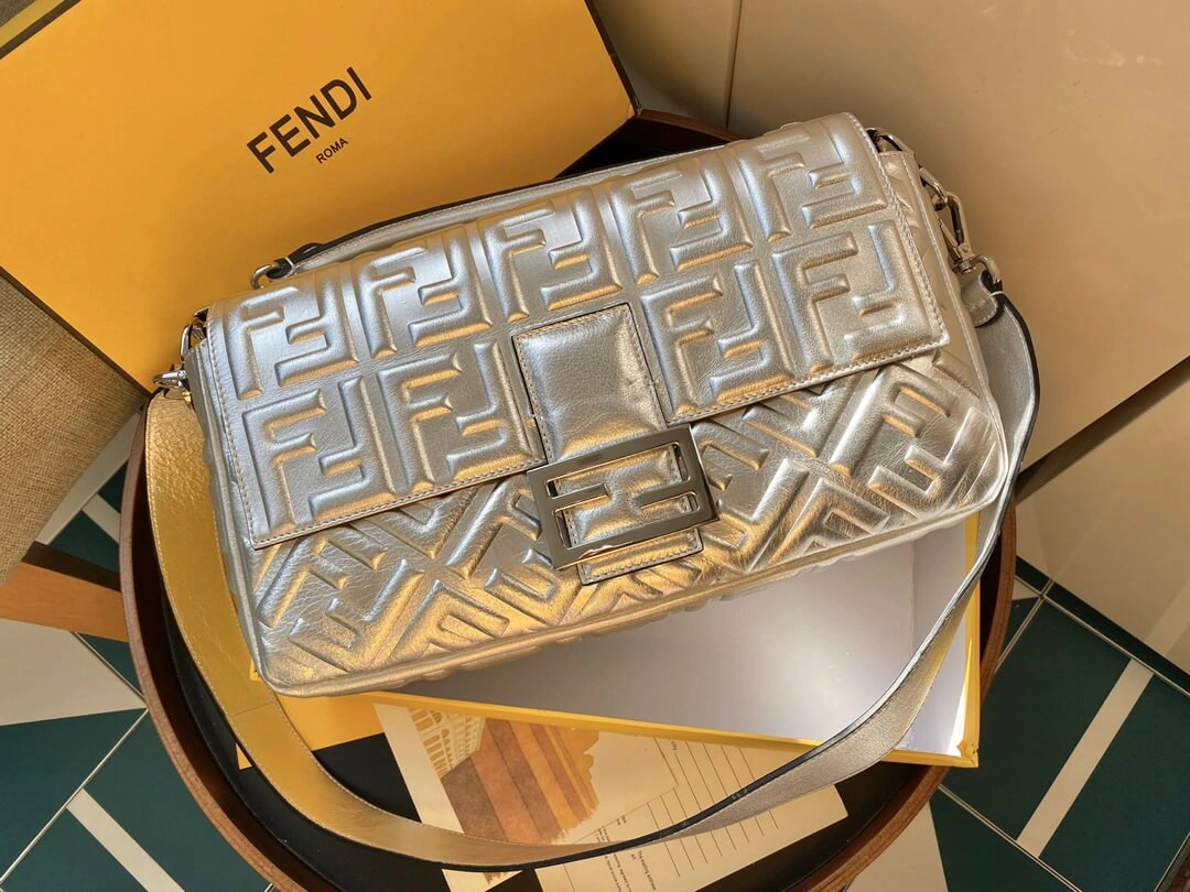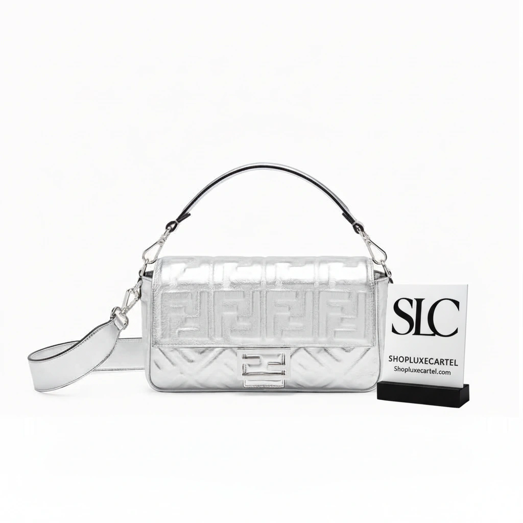Iconic Baguette Metallic Silver Leather Shoulder Bag 8BR60