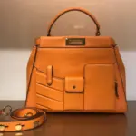 This beautifully structured satchel is a masterpiece of design and functionality. Expertly crafted from rich orange calfskin, it features a distinctive dual-compartment interior separated by a rigid partition, offering exceptional organization for your daily essentials. The polished, gold-finish hardware adds a touch of timeless elegance to its sophisticated silhouette.