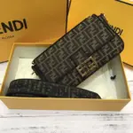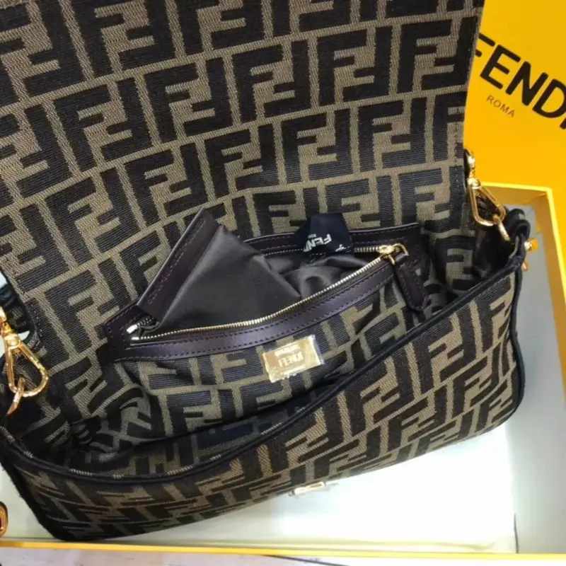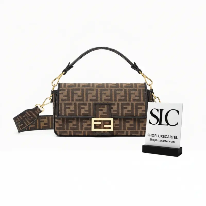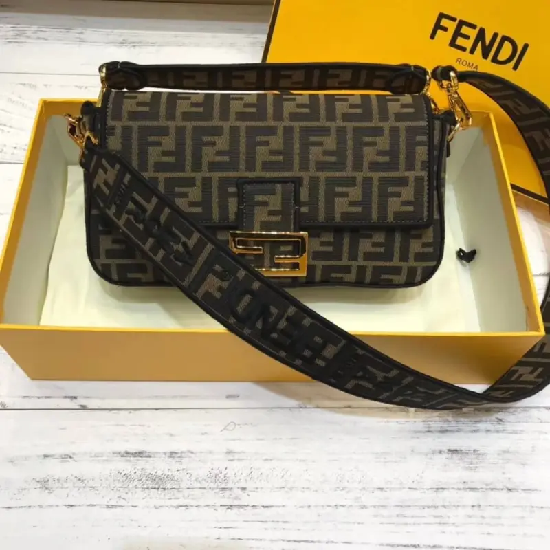 Iconic Shape Brown Fabric Baguette Shoulder Flap Bag 8BR600