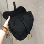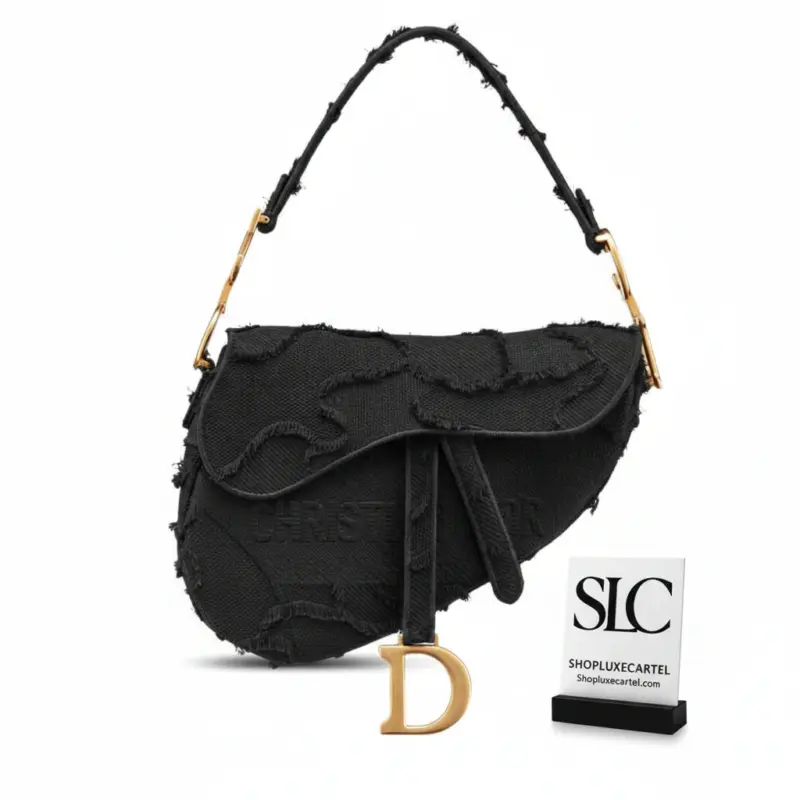 This beautifully crafted bag features a timeless equestrian-inspired silhouette, updated with a bold and modern aesthetic. The design is defined by its unique saddle shape and intricate camouflage embroidery, meticulously created from hand-cut, fringed material for a rich, textured finish. It’s a statement piece that blends artisanal craftsmanship with contemporary style.