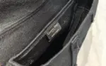 The bag’s distinctive look is enhanced by polished metallic hardware, including an elegant stirrup-shaped magnetic clasp and gleaming accents on each side of the handle. An exterior back pocket provides convenient storage for small essentials. Offering true versatility, this style can be carried by hand or worn comfortably over the shoulder, and its strap can be interchanged for a customized look.