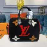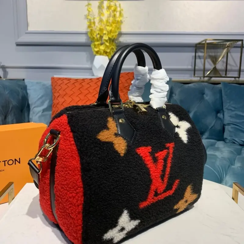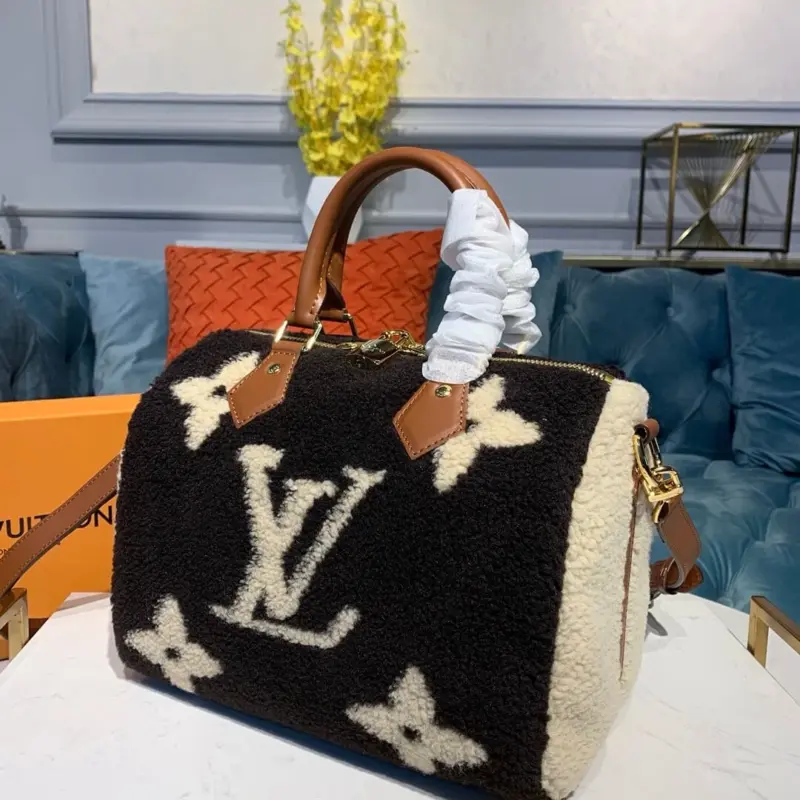 Discover a fresh take on a classic city bag, updated with a chic and luxurious new twist. This handbag showcases exceptional craftsmanship through an elaborate intarsia technique, creating a large-scale geometric pattern from wonderfully soft and plush shearling. The result is an irresistibly fluffy and highly textural accessory that makes a sophisticated statement.