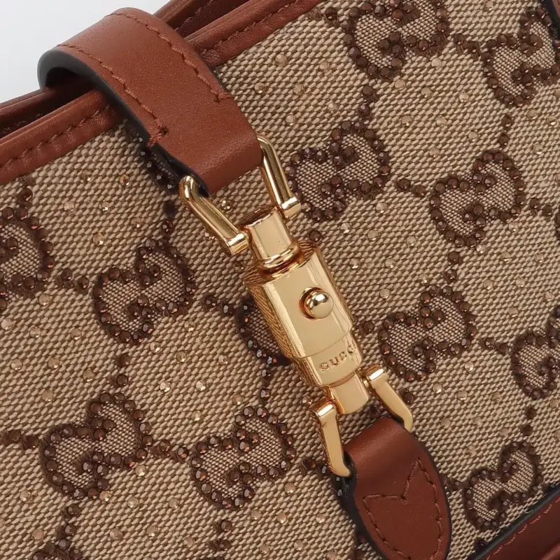 Reimagined for the modern wardrobe, this mini shoulder bag showcases a celebrated, archival silhouette. The design is presented in a durable canvas featuring a timeless camel and ebony geometric pattern, elevated with sparkling crystals for a touch of contemporary glamour. This versatile accessory is enhanced by a second, detachable strap, allowing it to be worn in multiple ways—as a chic top handle, a sophisticated shoulder bag, or a convenient crossbody.