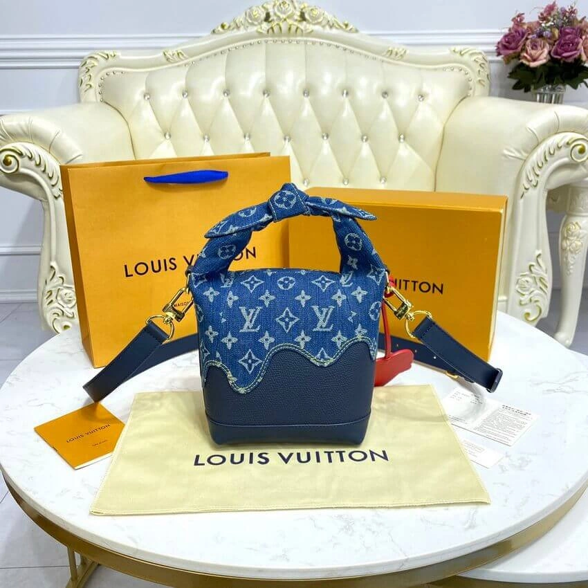 The bag is distinguished by its many original details, most notably the elegant top handle, which is formed by a creative, kimono-style knot. This piece offers versatile carrying options with a removable and adjustable strap, while a charming heart-shaped leather tag adds a final touch of personality. It’s an ideal choice for anyone seeking a sophisticated and artfully designed handbag.