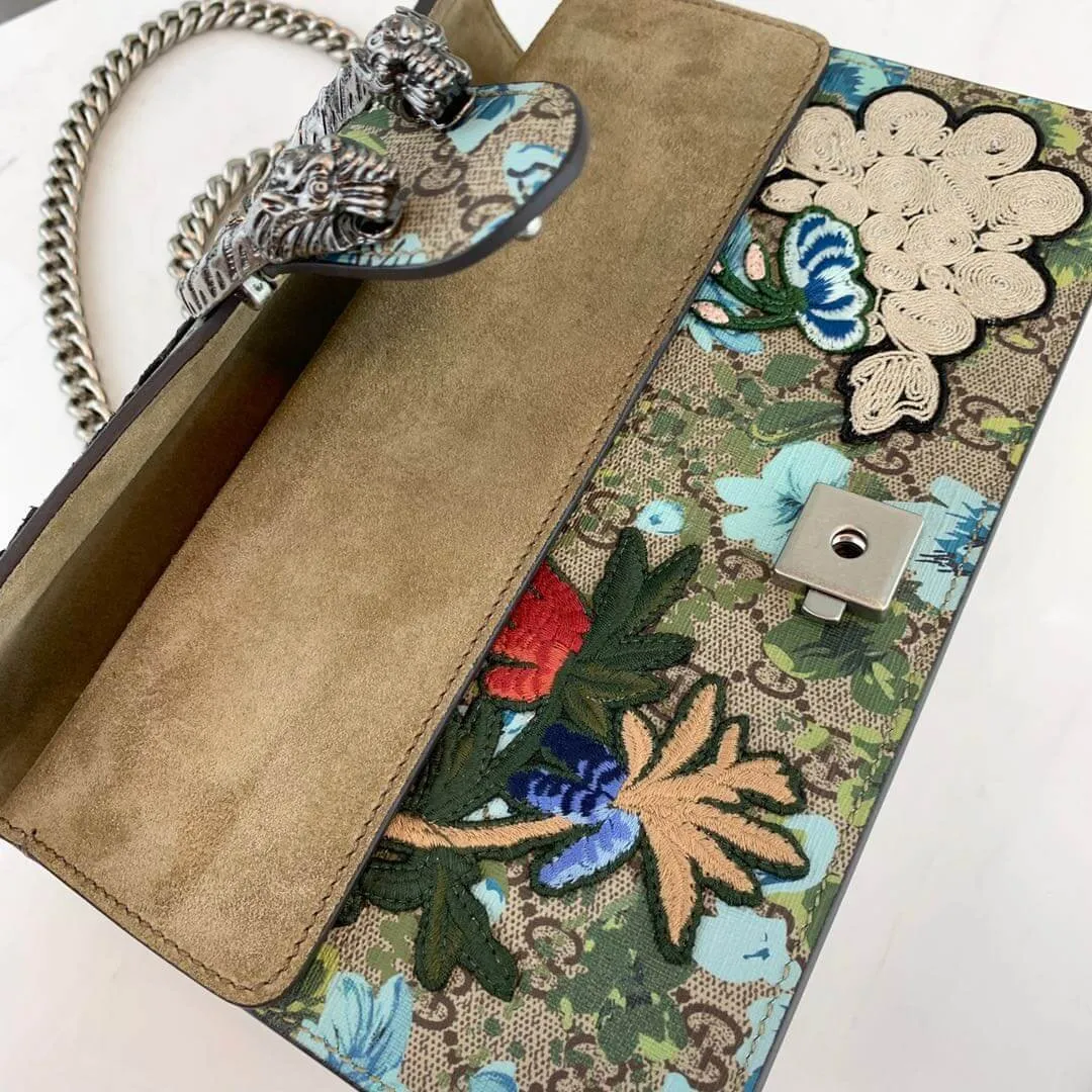 - Material: Coated canvas with a geometric pattern, featuring bee and flower embroidery