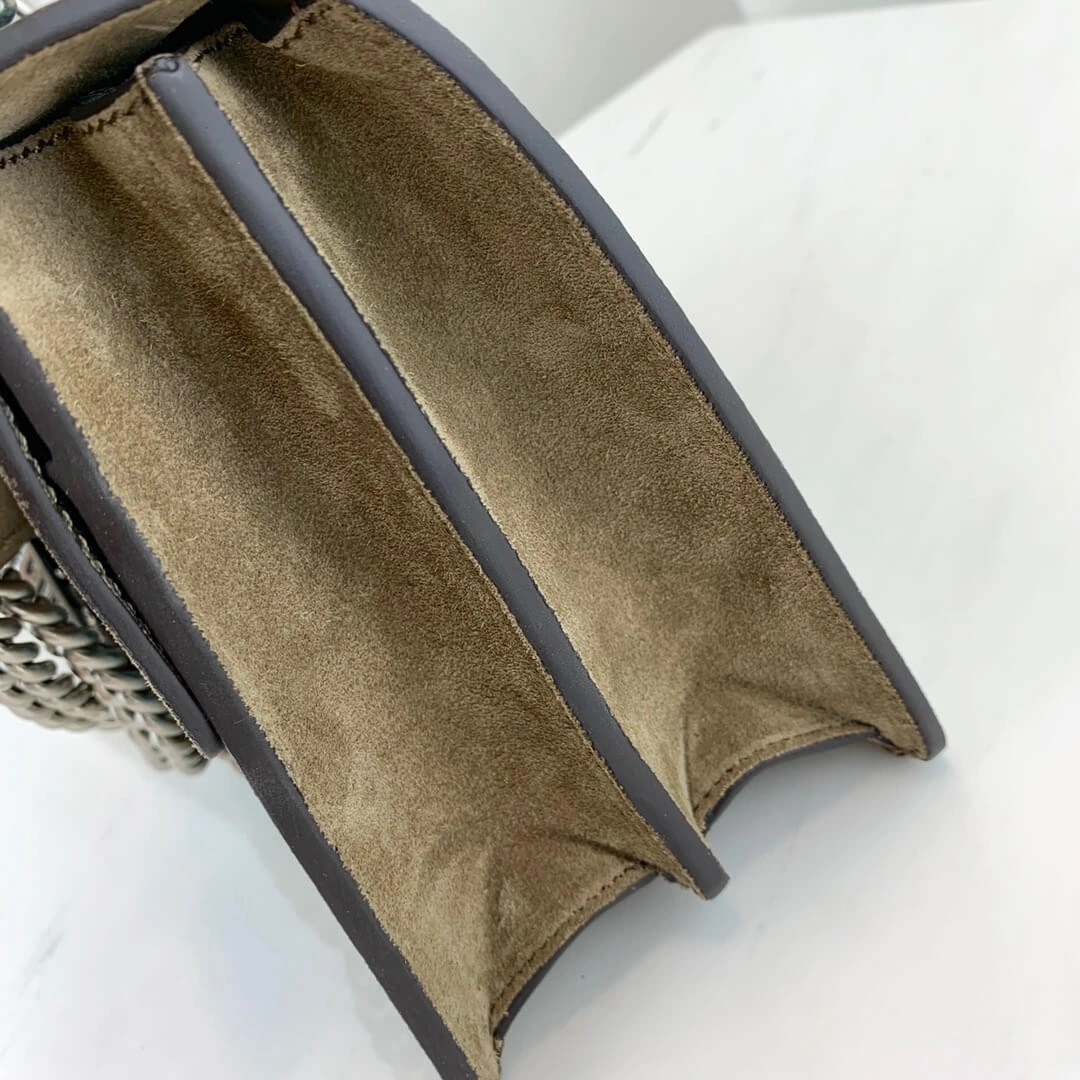 - Strap: Sliding chain strap can be worn as a shoulder strap with a 15″ drop or as a top handle with an 8.5″ drop