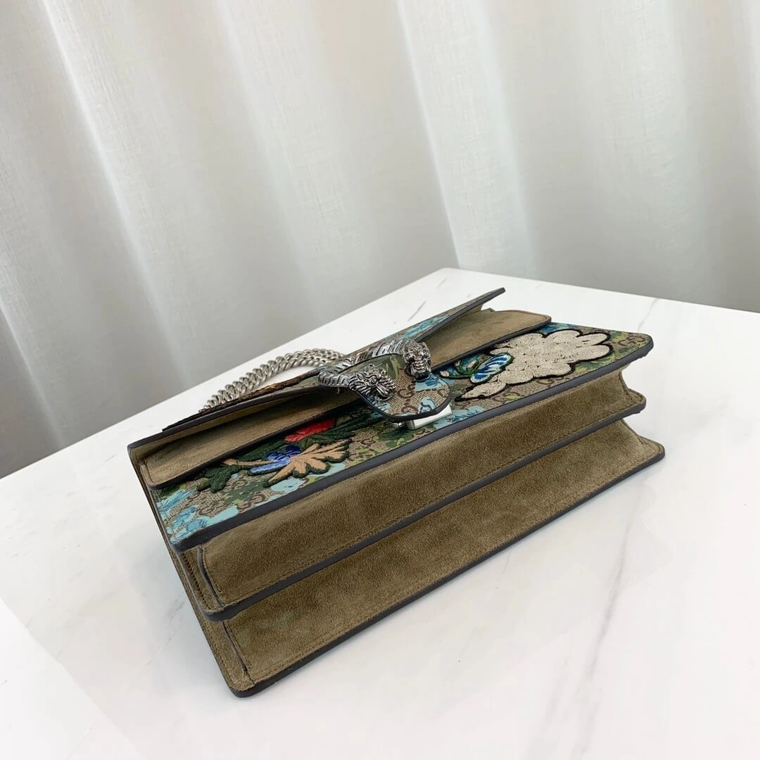 Khaki Canvas Embroidered Bee and Flower Shoulder Bag 400249