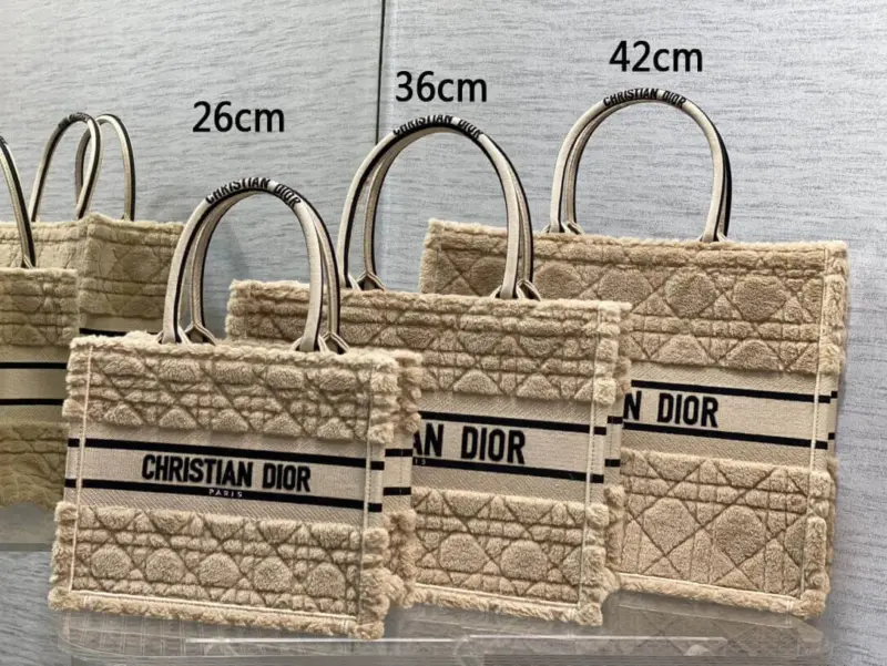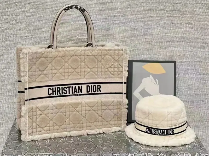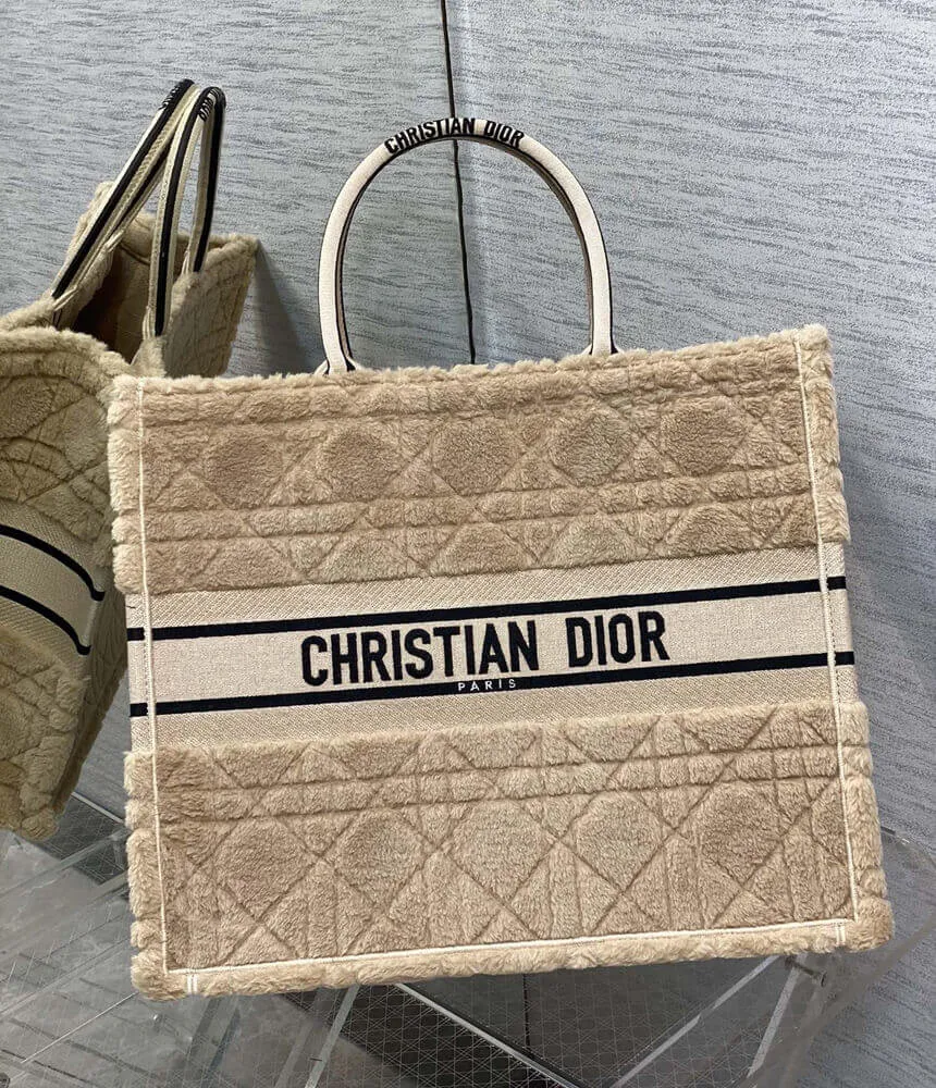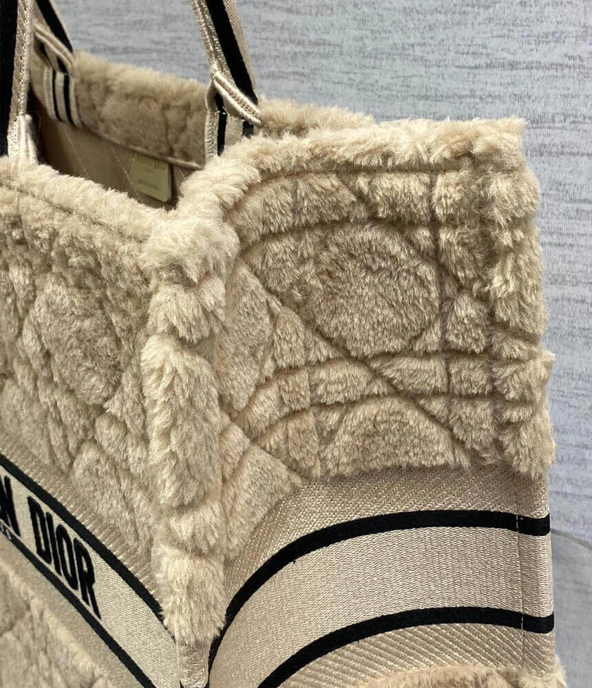 Large Book Style Tote in Beige Cannage Shearling M1286