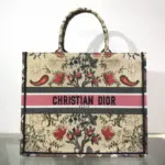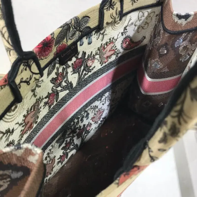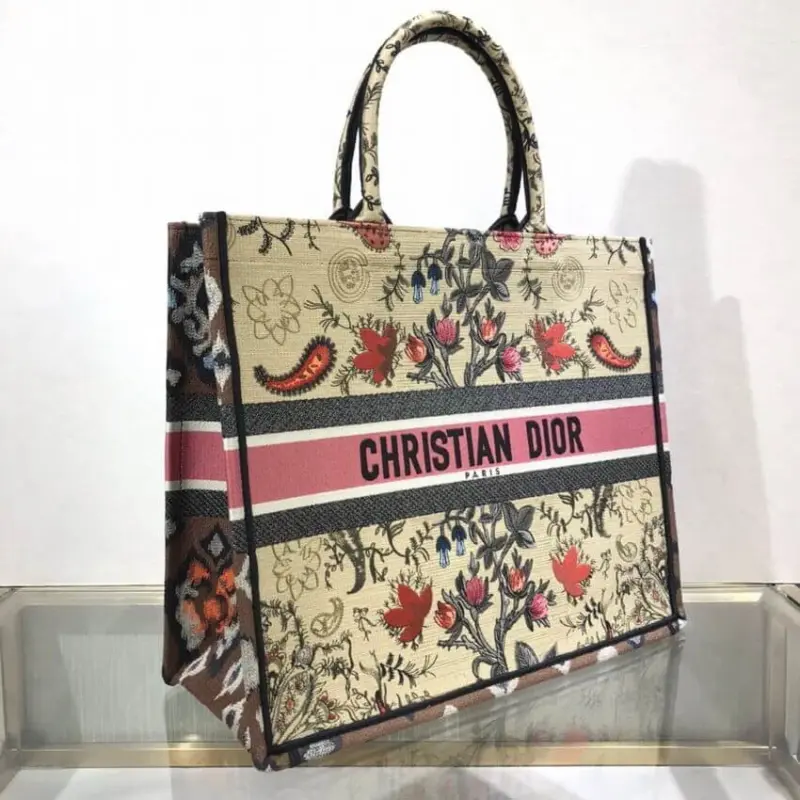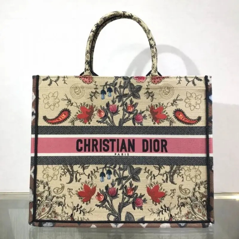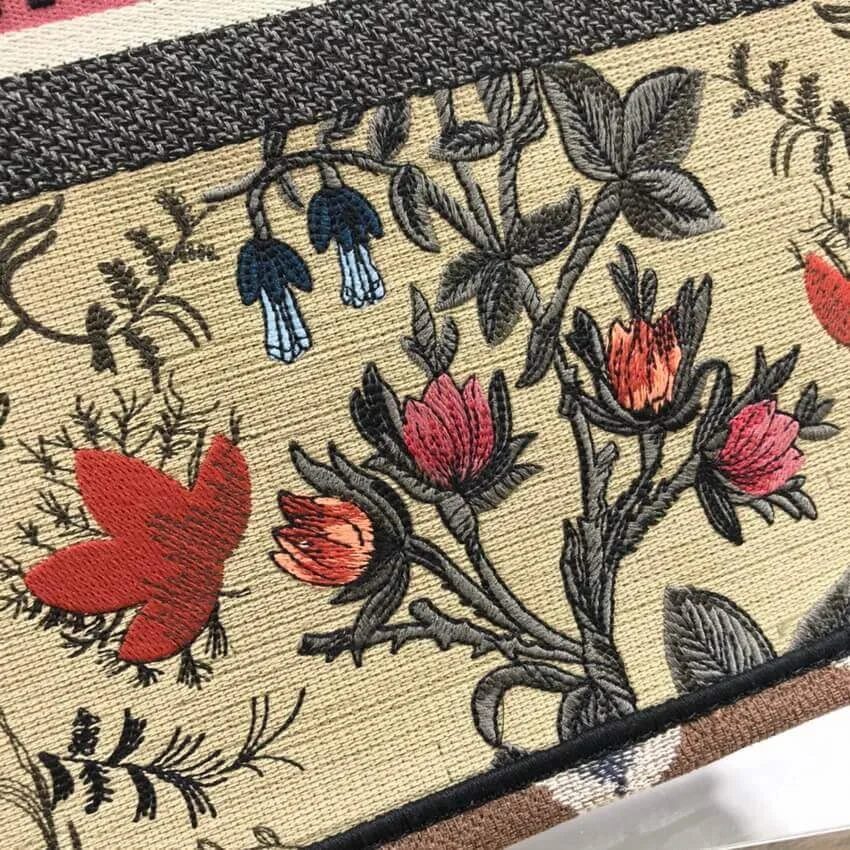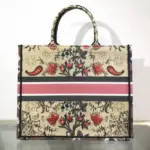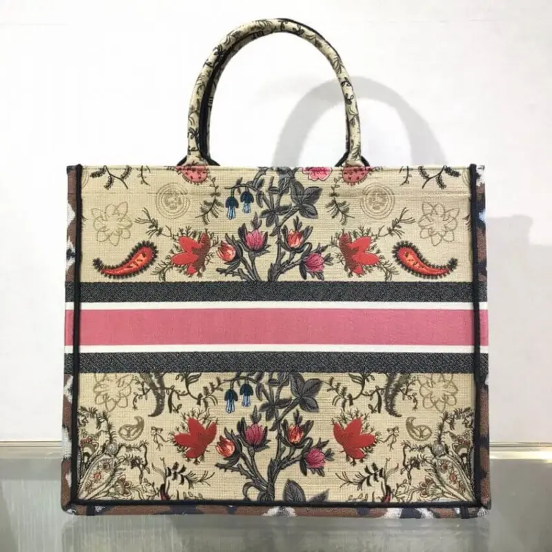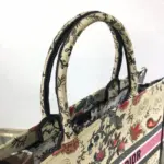 A true statement piece, this spacious tote bag is defined by its stunning and intricate multicolored floral embroidery. The bag’s structured silhouette is designed to hold all your daily necessities with ease, making it a perfect blend of high fashion and everyday functionality. It’s an ideal accessory for adding a vibrant, artistic touch to any outfit.