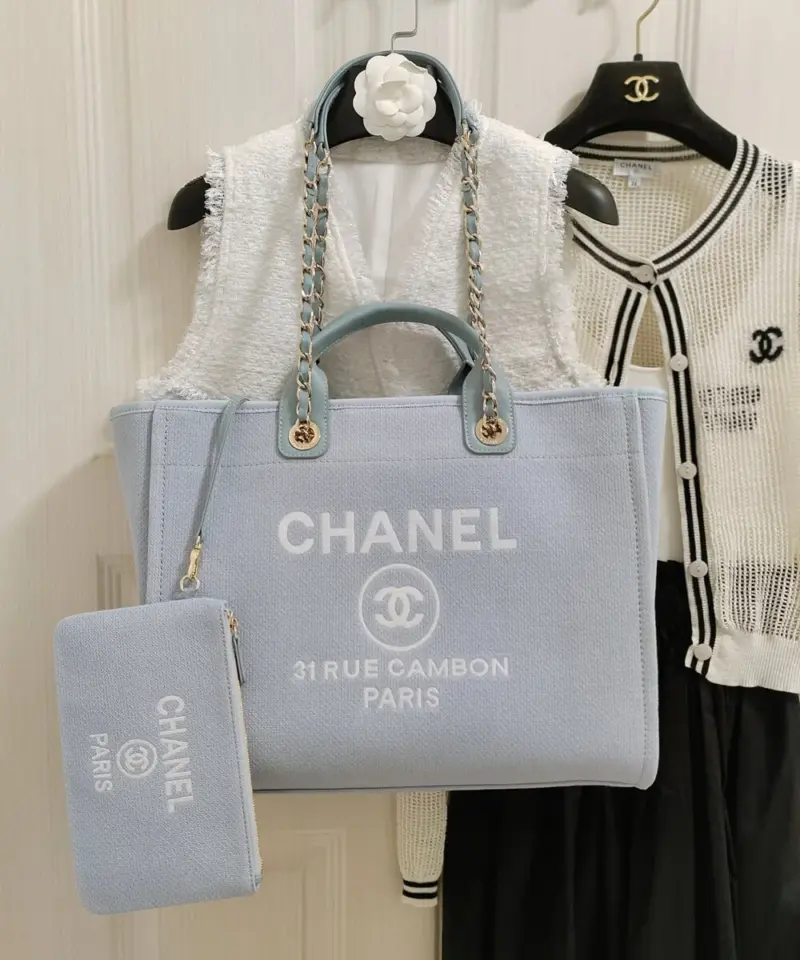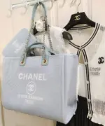 Large Deauville Shopping Tote Bag in Grey Mixed Fibers AS3351