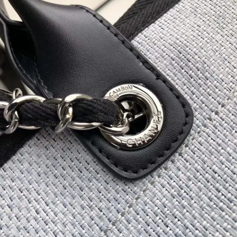 Large Deauville Style Canvas Shopping Tote Bag A66941