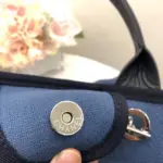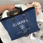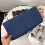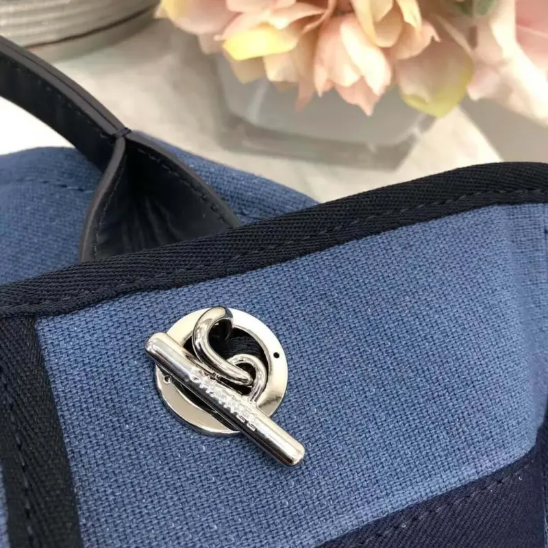 This elegant and highly functional tote bag offers exceptional storage capacity, making it the perfect companion for a variety of occasions. Its durable cotton canvas construction ensures it can handle everything from daily shopping trips to beach outings or picnics. The classic blue hue and sophisticated design make it a timeless accessory that combines practicality with effortless style.