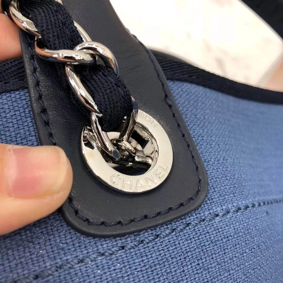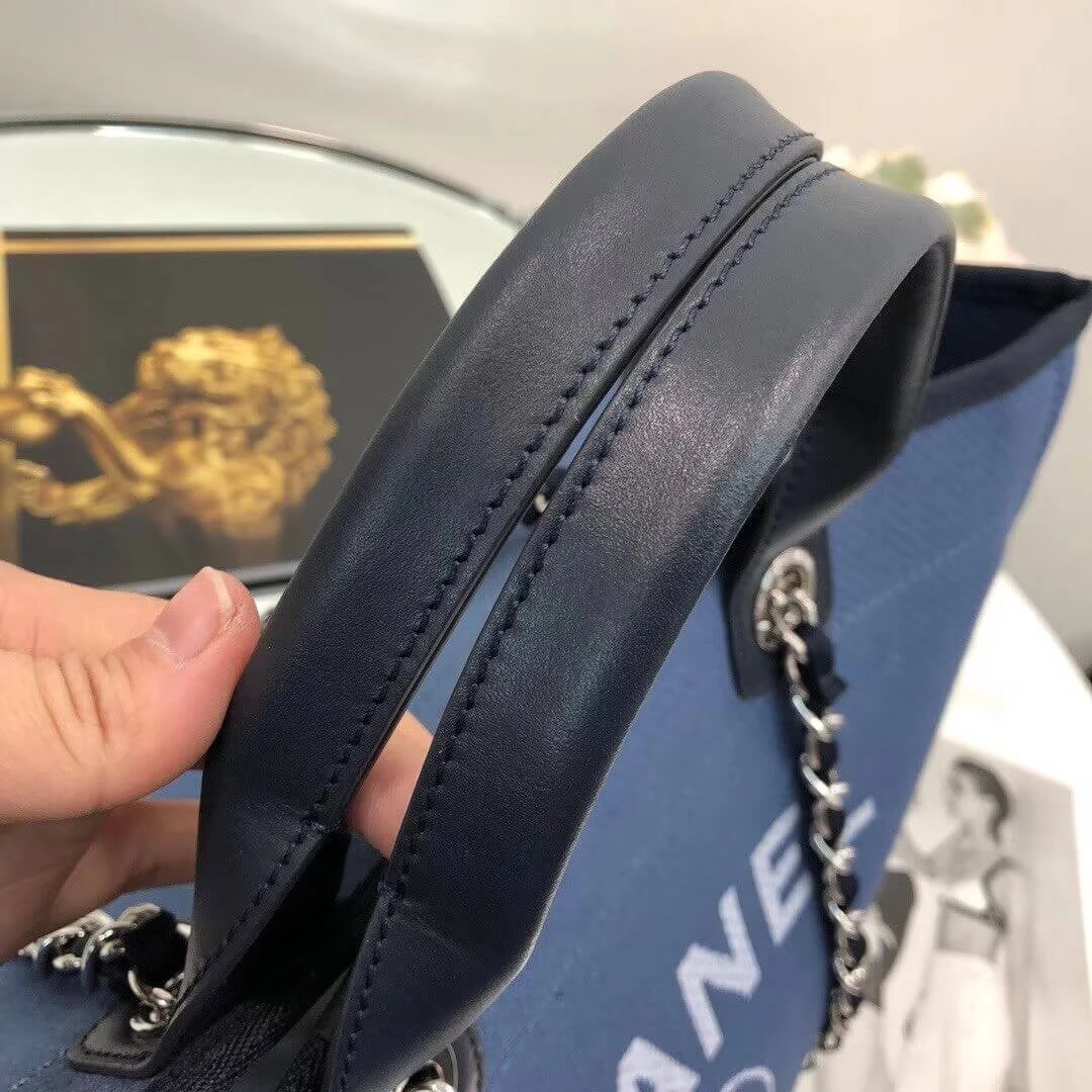 Large Deauville Style Canvas Shopping Tote Bag Blue A66941