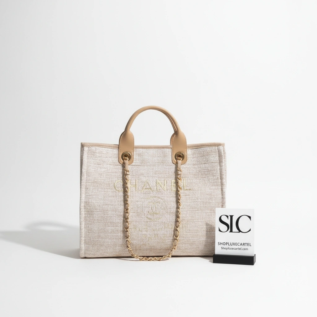 Designed for both style and function, this versatile tote features a spacious interior with multiple pockets to keep your essentials organized and easily accessible. The comfortable handles include a classic chain and leather-style strap, allowing for effortless carrying whether in hand or on the shoulder. Gleaming gold-tone hardware completes the design, offering a refined finish to this must-have carryall.