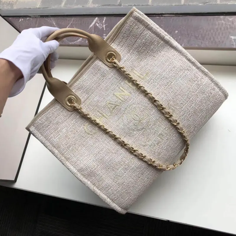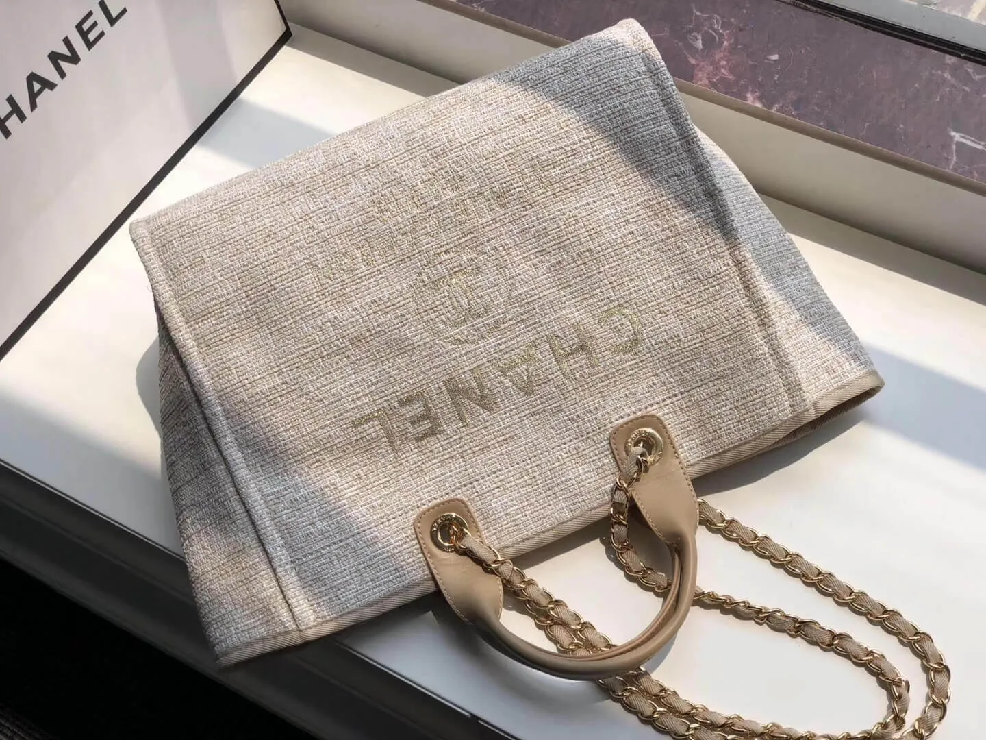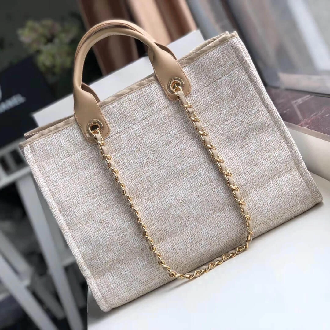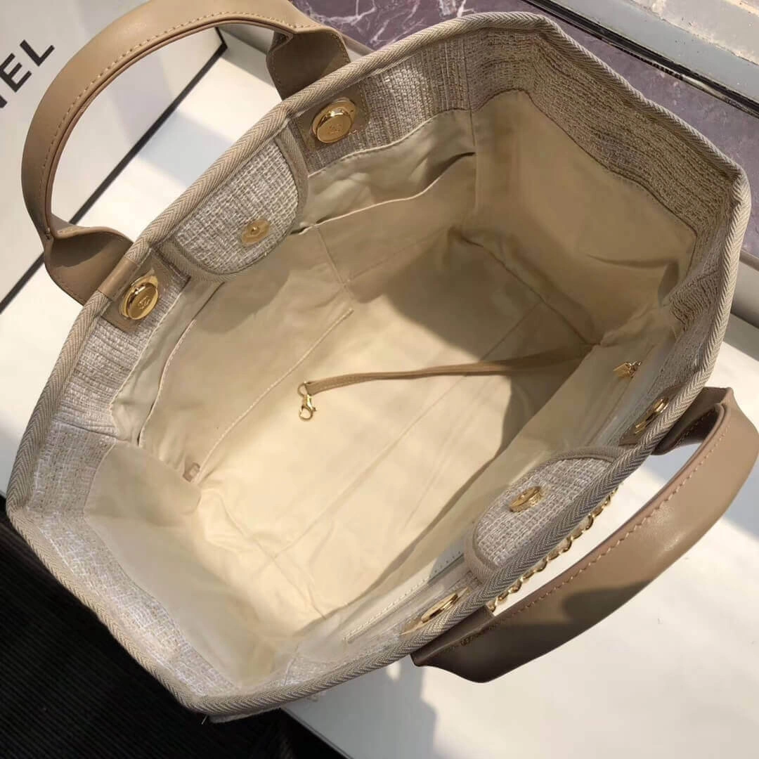 Large Deauville Style Canvas Shopping Tote Bag Cream Beige A66941