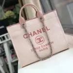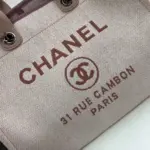 The bag’s front is adorned with stylish lettering inspired by Parisian fashion, proclaiming “31 Rue Cambon Paris” for a touch of classic flair. It offers multiple carrying options, featuring comfortable calfskin handles and an interwoven silver-tone chain and leather shoulder strap. The well-organized interior ensures your belongings are easy to find and secure.