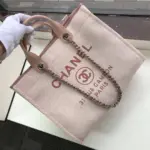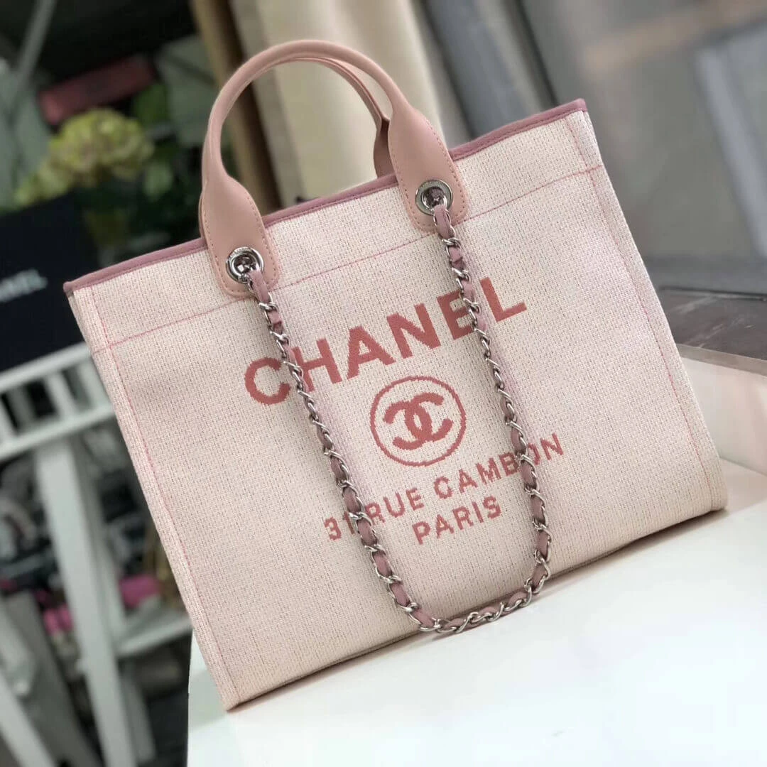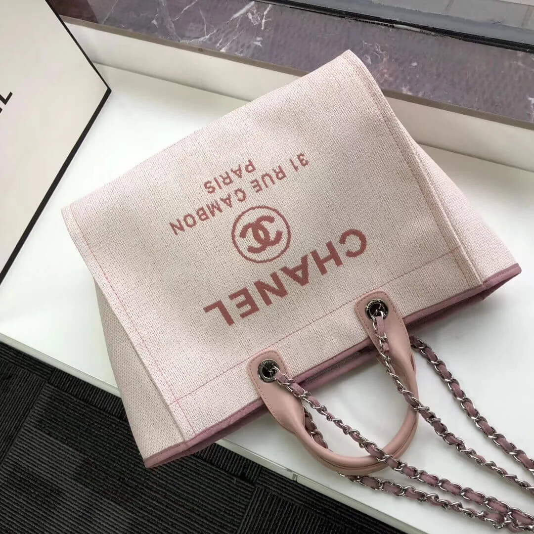 Large Deauville Style Canvas Shopping Tote Bag Pink A66941