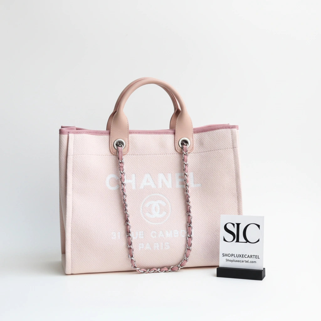 Large Deauville Two-Tone Canvas Shopping Tote Bag A66941