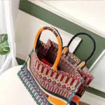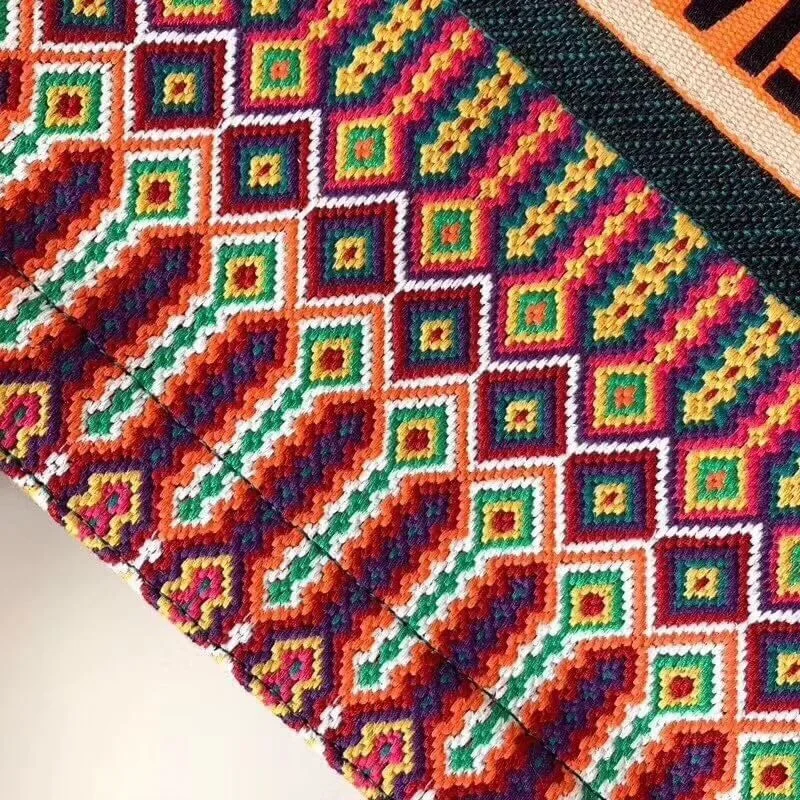 Discover your new essential carryall, a beautifully crafted tote designed to combine high style with everyday functionality. This bag features a durable canvas body, brought to life with intricate, multi-colored embroidery that creates a stunning visual texture. The vibrant orange base makes the detailed stitchwork pop, ensuring this accessory stands out whether you’re on a city errand or a weekend escape.