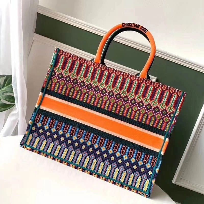 Large Embroidered Canvas Travel Book Tote Bag Orange M1286