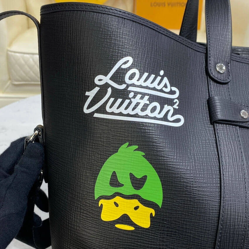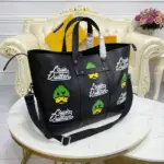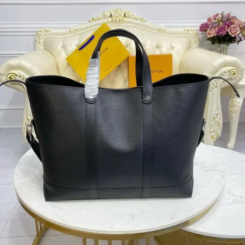 Made from premium black cowhide leather with matching trim, this bag is built to last. It offers versatile carrying options with its durable double handles and a detachable, adjustable shoulder strap for comfortable, hands-free wear. A simple and secure hook closure system opens to a large-capacity interior, perfect for organizing everything you need for a day in the city or a weekend getaway.