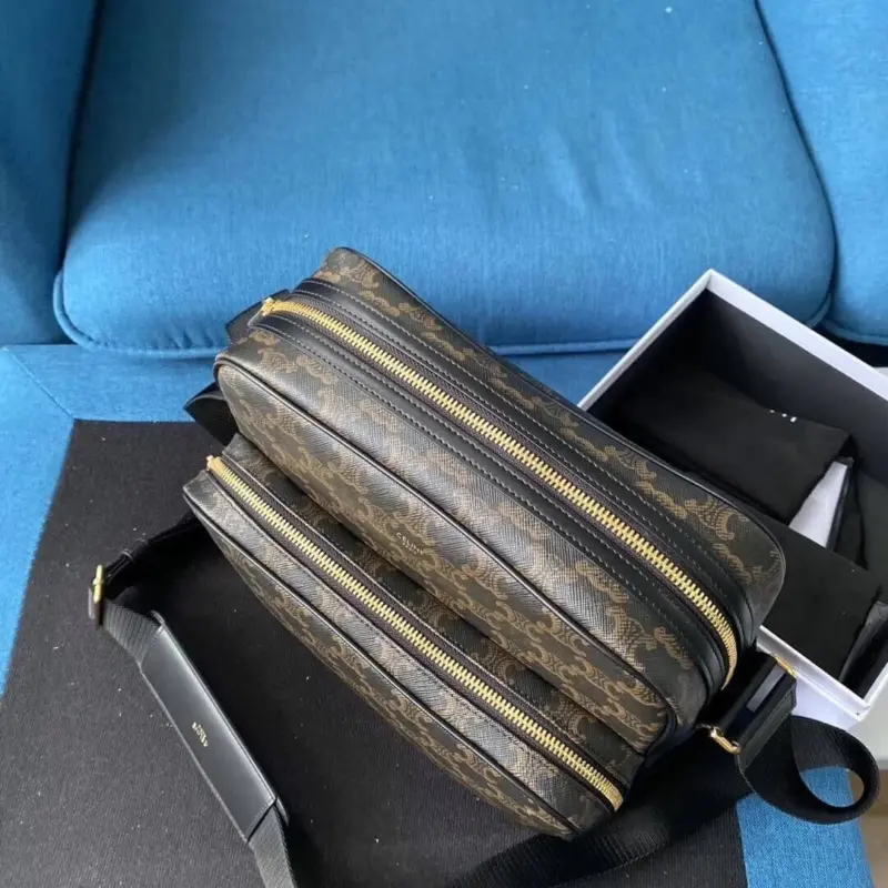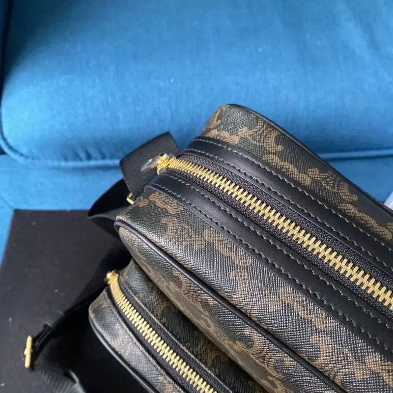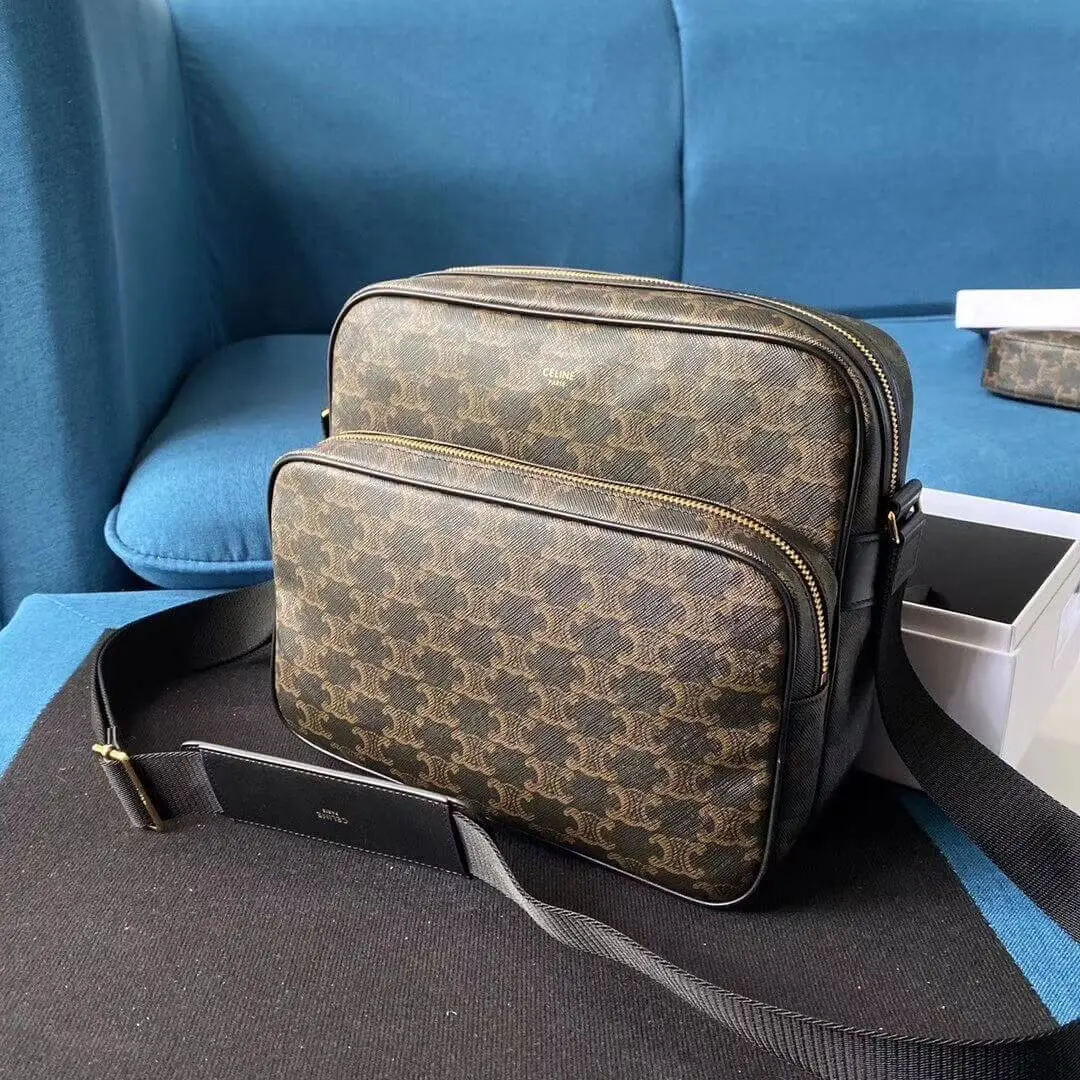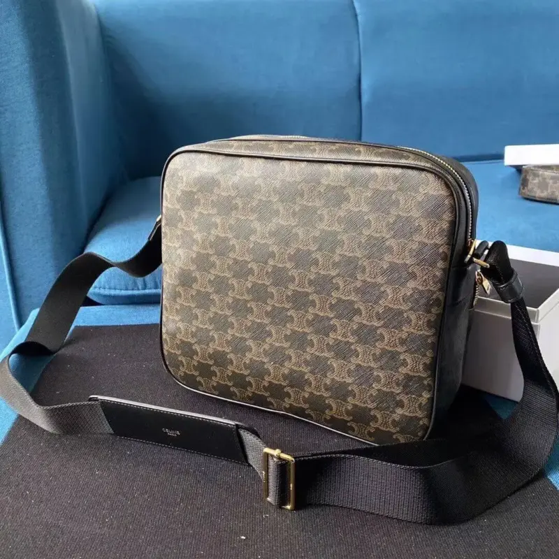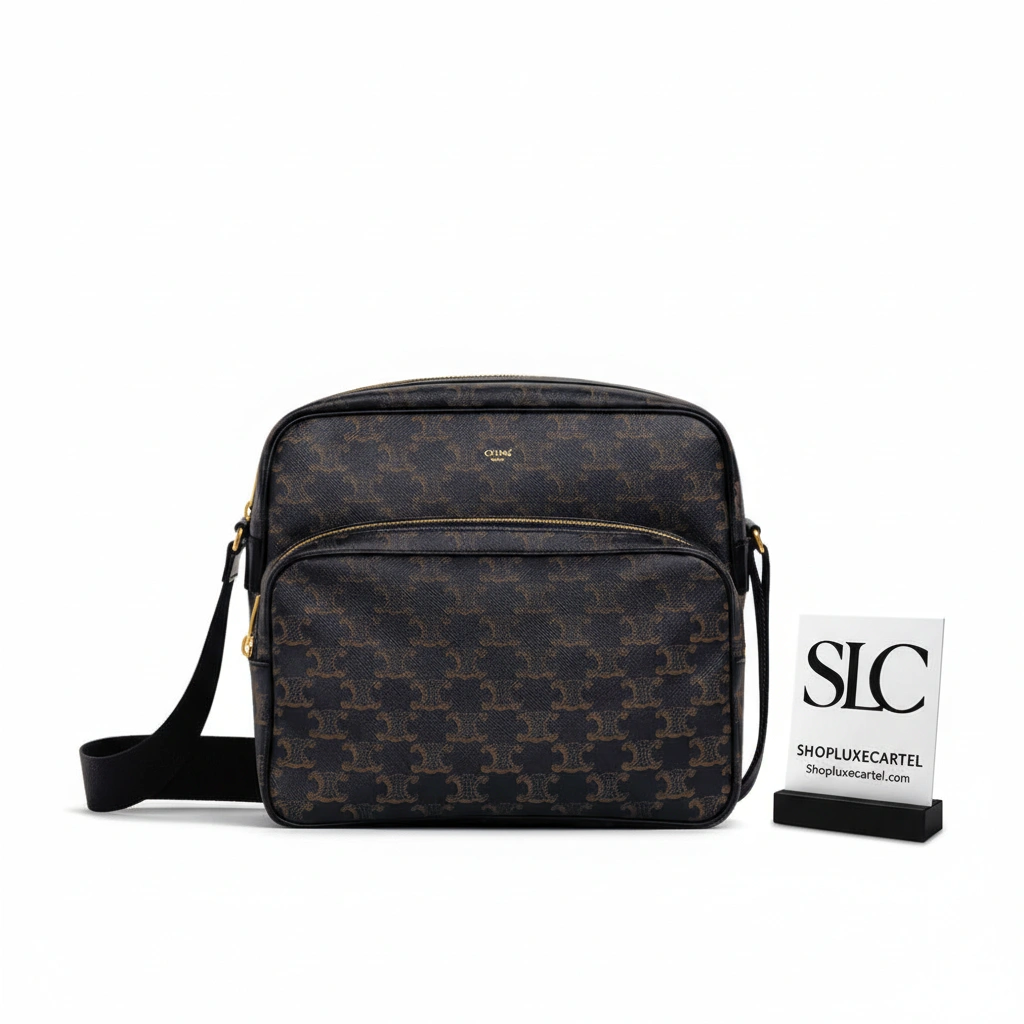 Experience the perfect blend of enduring style and everyday functionality with this thoughtfully designed messenger bag. Crafted from a durable, coated canvas featuring a sophisticated print and complemented by smooth calfskin leather trim, this bag offers a refined look suitable for any occasion. The elegant gold-tone metal hardware adds a touch of polish to its classic silhouette.