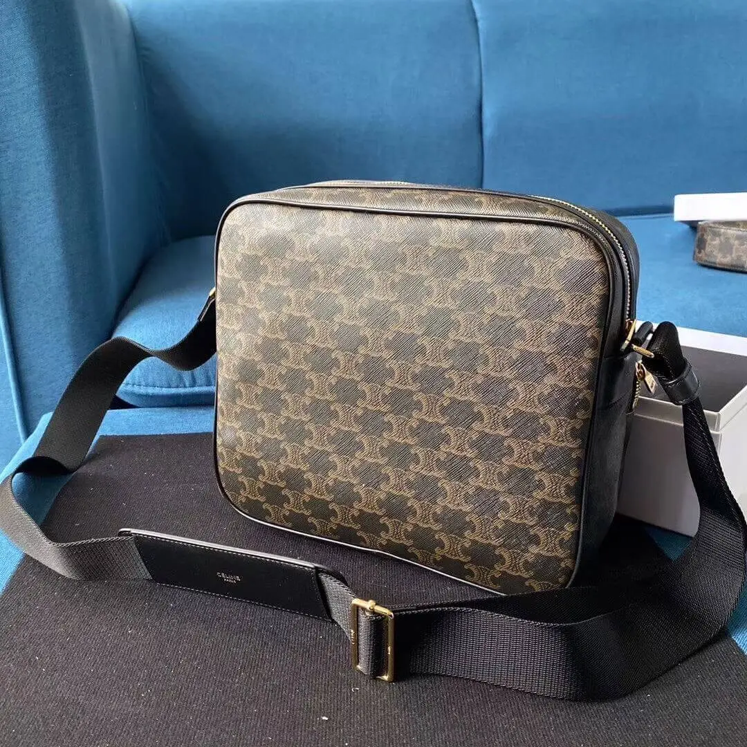 Large Pocket Messenger Bag with Classic Canvas Print 190822