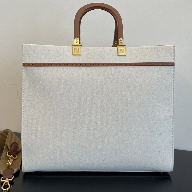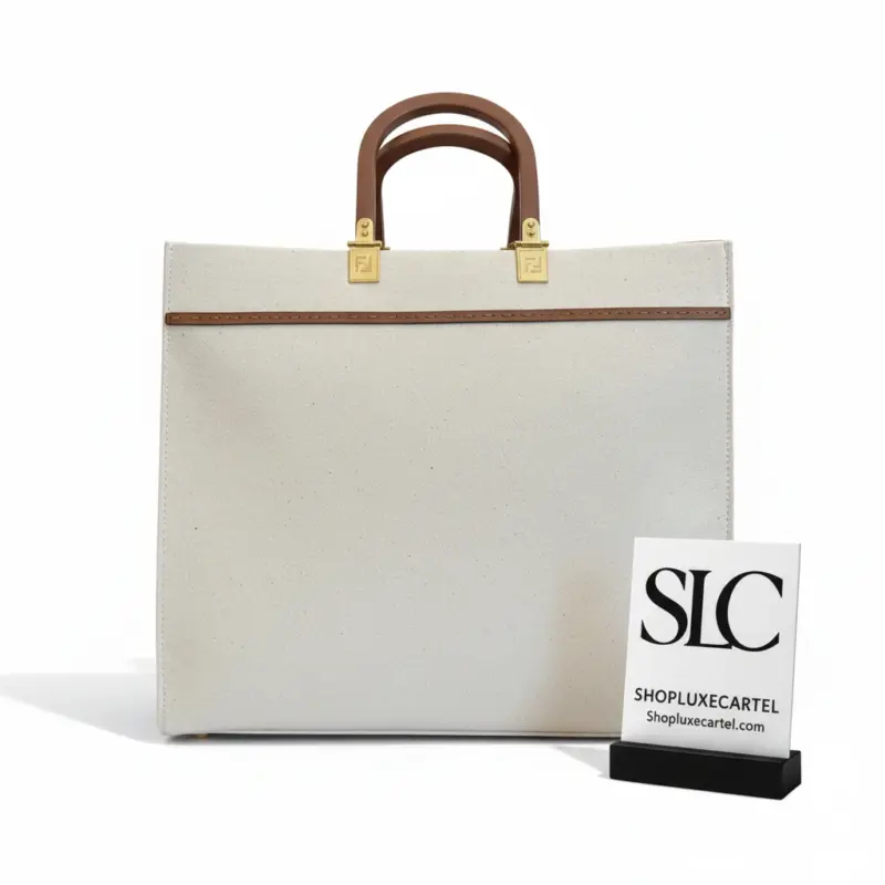 Large Top Handle Shopper Tote in Cream Canvas 8BH372