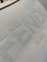 This tote is defined by its meticulous details, including a sharp contrasting trim that outlines its silhouette and polished gold-tone hardware for a touch of luxury. It features a large, embossed lettering detail on the front, adding a subtle yet distinctive point of interest. The comfortable, rounded top handles make it easy to carry, whether by hand or on the arm.