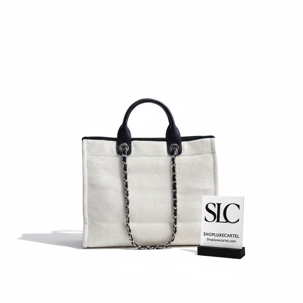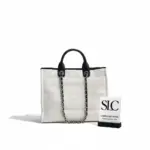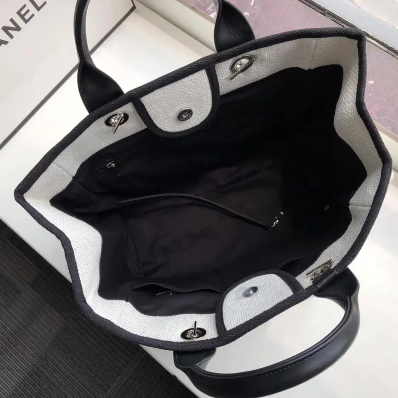 Discover your new essential companion in this beautifully crafted two-tone shopper tote. Made from a durable and high-quality cotton canvas, this bag offers exceptional storage capacity for all your needs, whether you’re heading to the market, the beach, or simply organizing your daily essentials. Its elegant white and black color scheme provides a timeless look, while the spacious interior ensures everything you need is right at your fingertips.