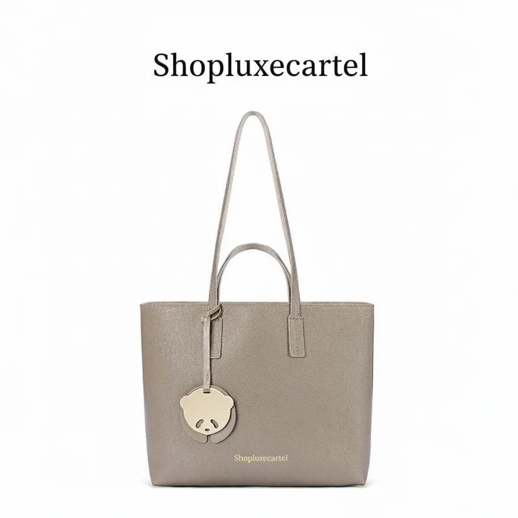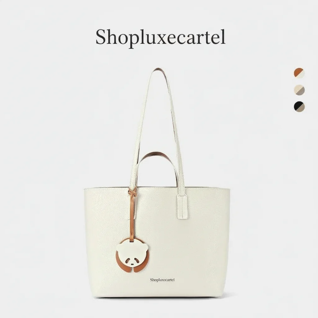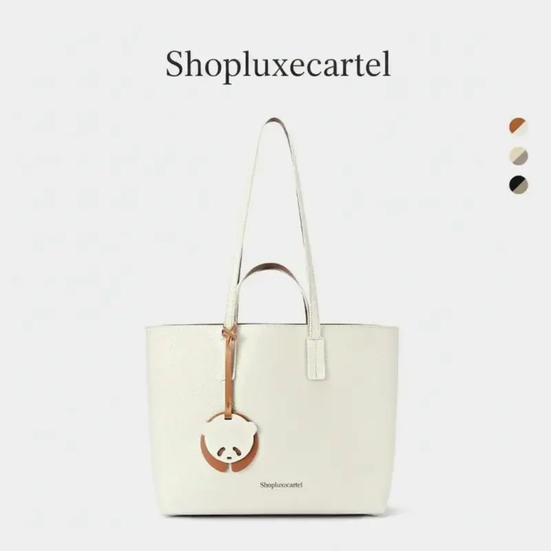 The standout feature is a delightful, detachable panda charm with polished gold-tone hardware, adding a unique personality to the clean, classic design. With its generous proportions and lightweight construction, this tote is the perfect fusion of fashion and function.