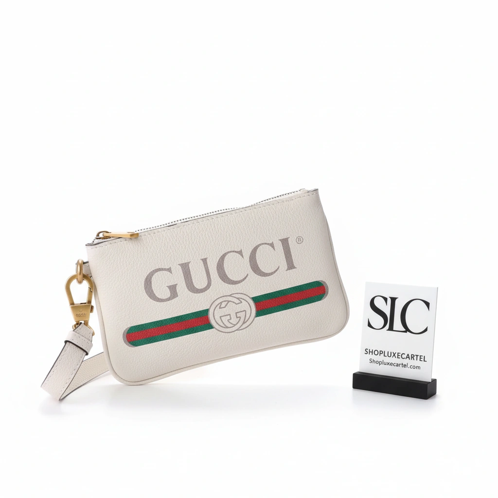 Leather Logo Print Monogram Pouch Clutch Evening Bag 526886