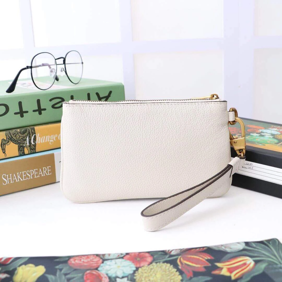 This piece is made from durable, high-quality leather and features a secure top zipper to keep your essential items safe. The addition of a practical wrist strap allows for effortless, hands-free carrying, combining both functionality and polished style.