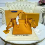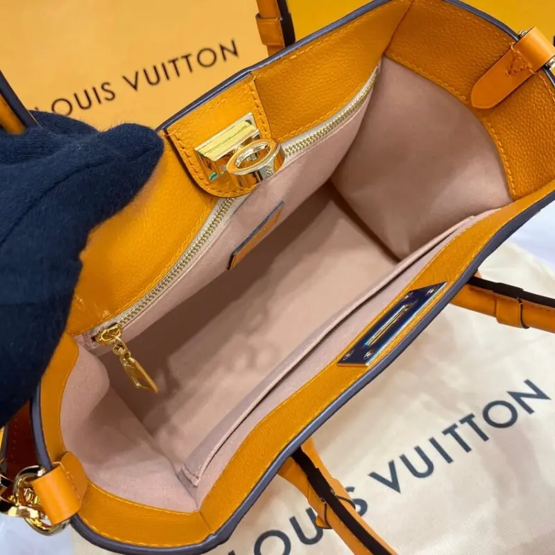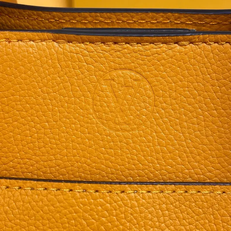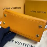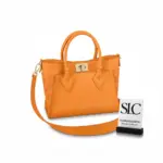 Leather Top Handle Tote Bag with Monogram Sides Orange M57730