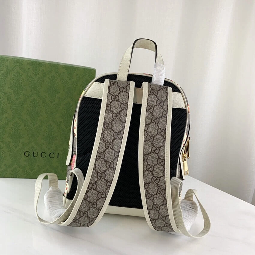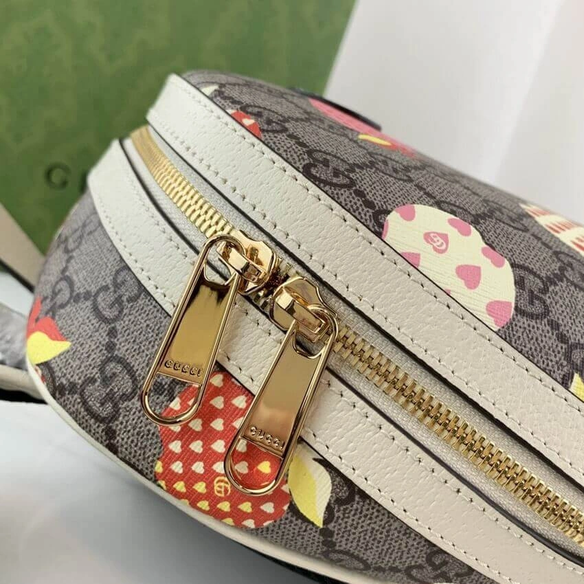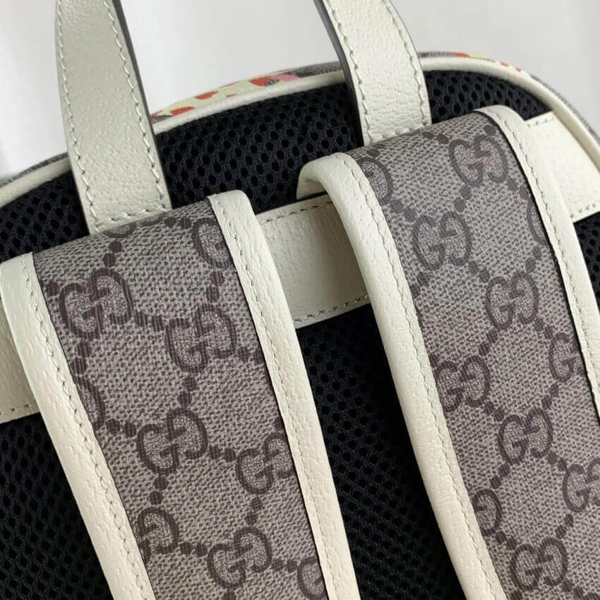 Capture a spirit of playful charm with this beautifully crafted small backpack. Designed with a classic dome shape, this bag features a whimsical all-over apple print set against a durable, coated canvas background. The crisp white leather trim adds a touch of refined contrast, making it a perfect accessory for adding a pop of personality to any outfit.