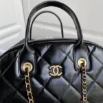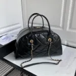 Discover timeless sophistication with this exquisitely designed bowling bag, crafted for the modern wardrobe. This piece is rendered in premium, supple calfskin leather, featuring a classic quilted stitching that adds a touch of texture and refined elegance. The bag’s structured silhouette is complemented by gleaming gold-tone hardware, creating a polished and versatile accessory suitable for any occasion.