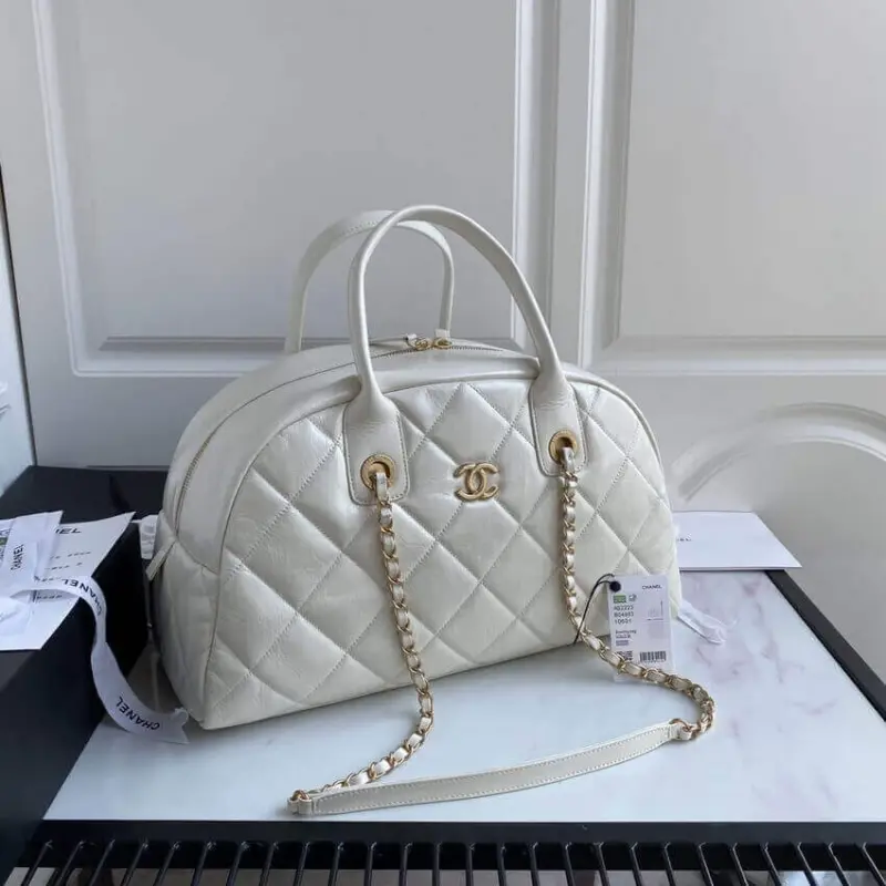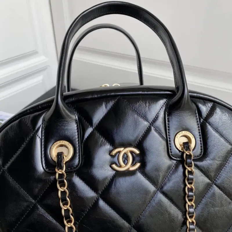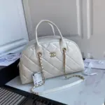 Luxury Quilted Calfskin Top Handle Bowling Bag AS2223