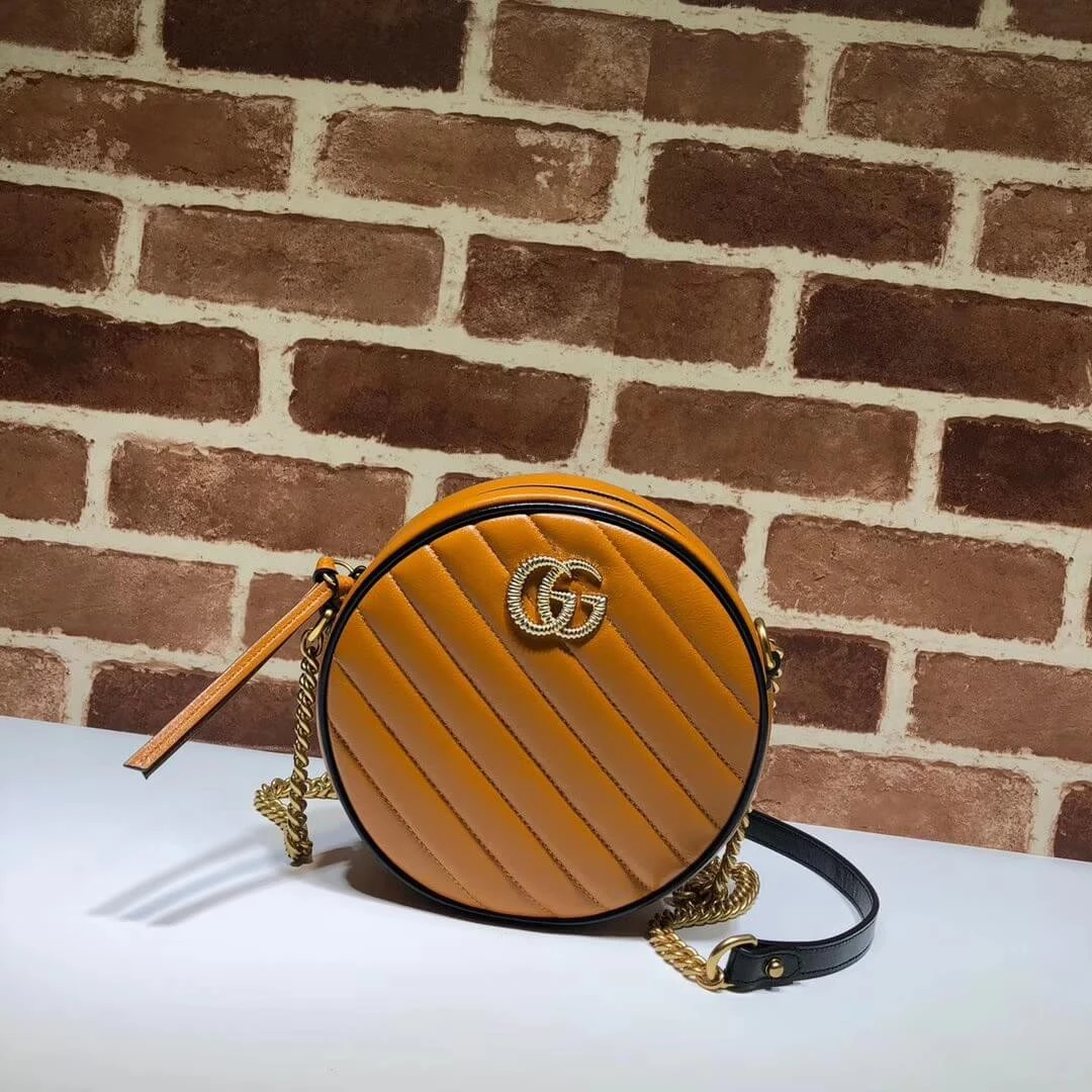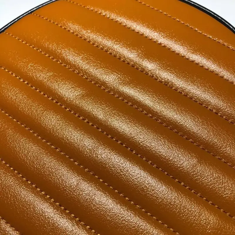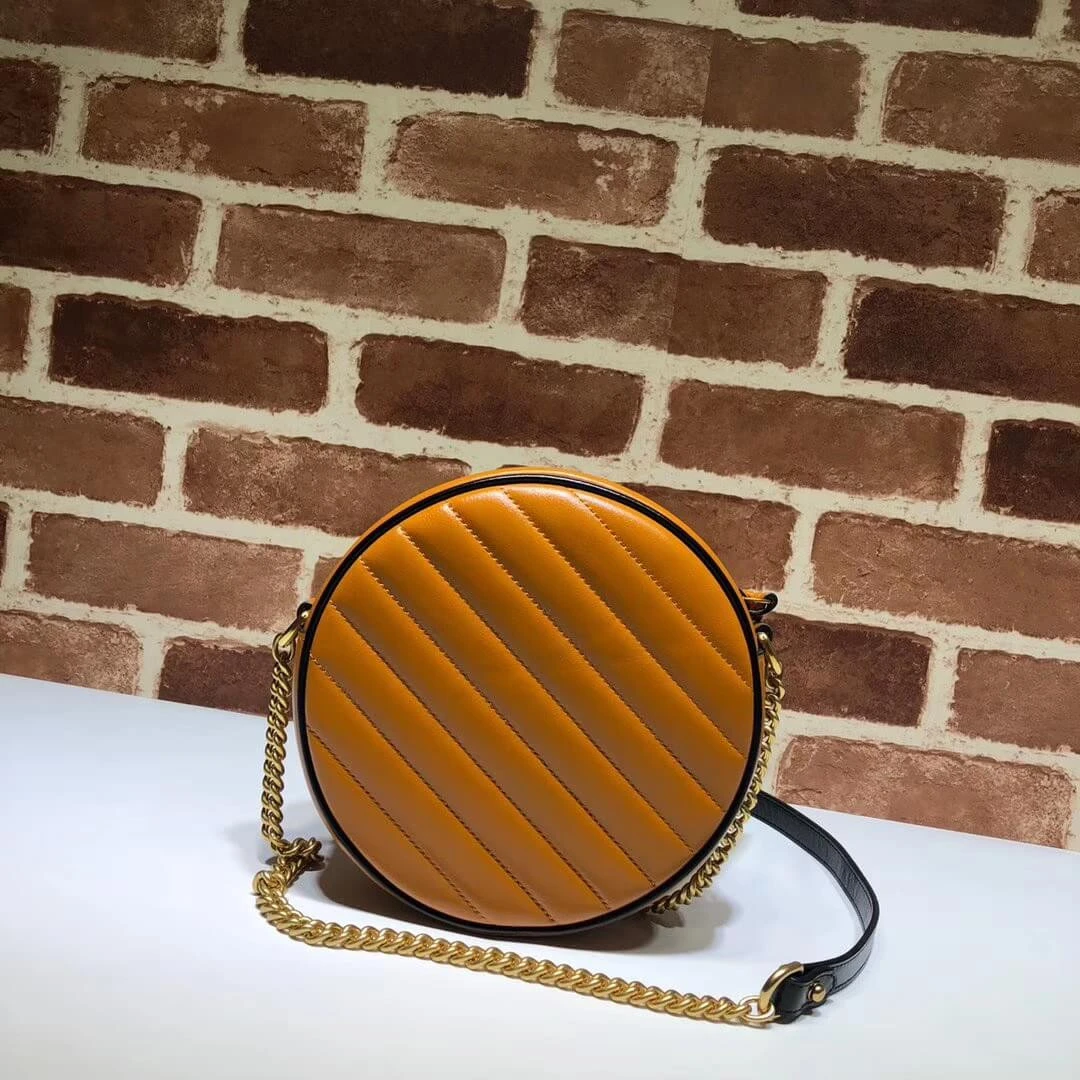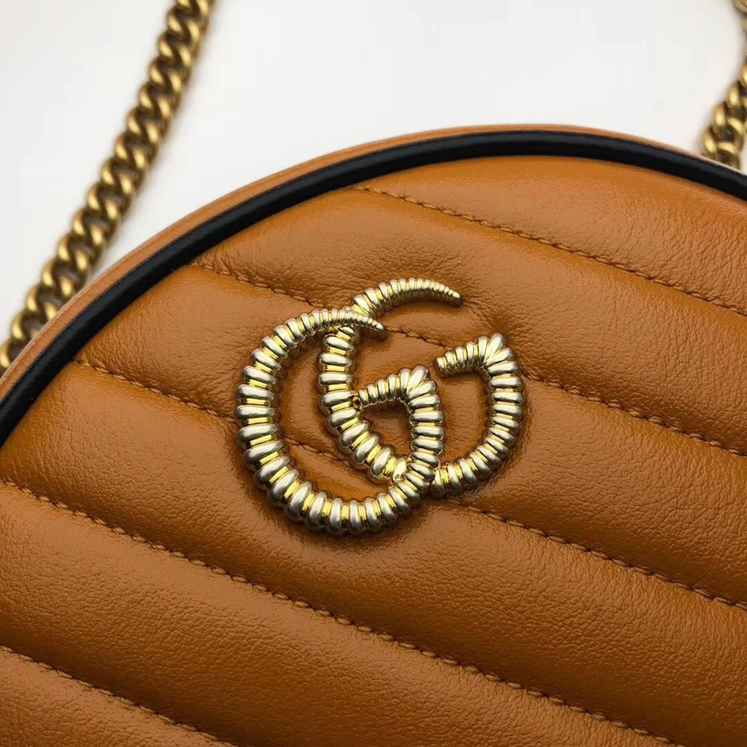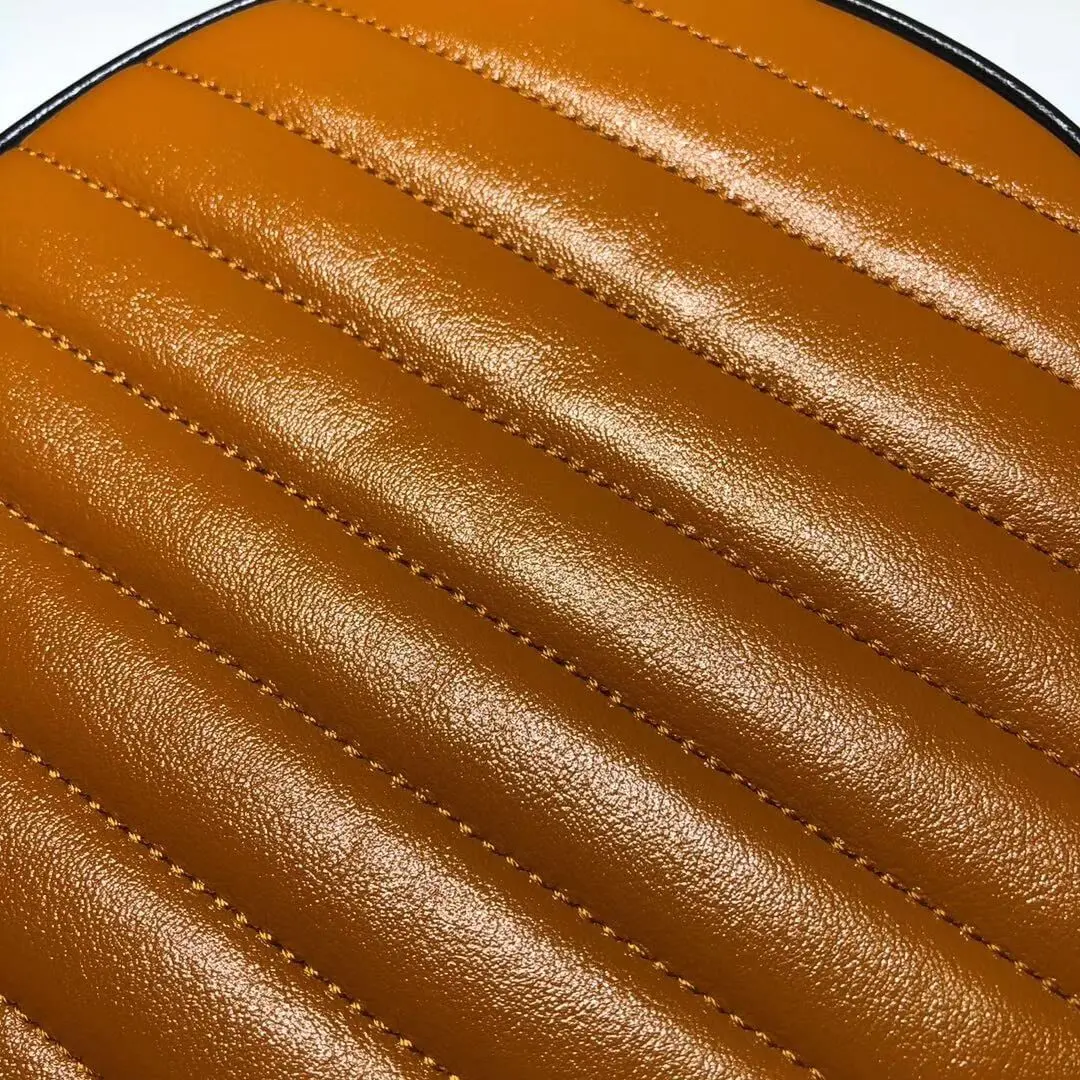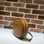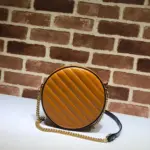Marmont Matelassé Mini Round Shoulder Bag in Cognac 550154