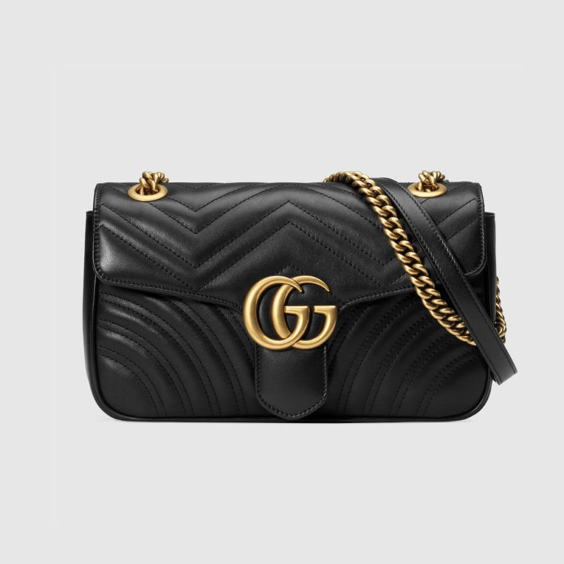 - Sliding chain strap can be worn as a shoulder strap with a 22-inch drop, as a top handle with a 12-inch drop, or as a crossbody bag