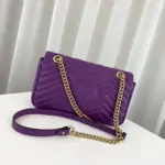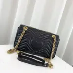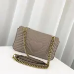 This beautifully crafted shoulder bag combines timeless elegance with modern versatility. Its softly structured shape is rendered in luxurious matelassé chevron-quilted leather, creating a sophisticated and plush texture. The design is highlighted by a distinctive heart stitched on the back, adding a touch of charm. An oversized flap, accented with a polished interlocking emblem and antique gold-toned hardware, provides a secure and stylish closure.
